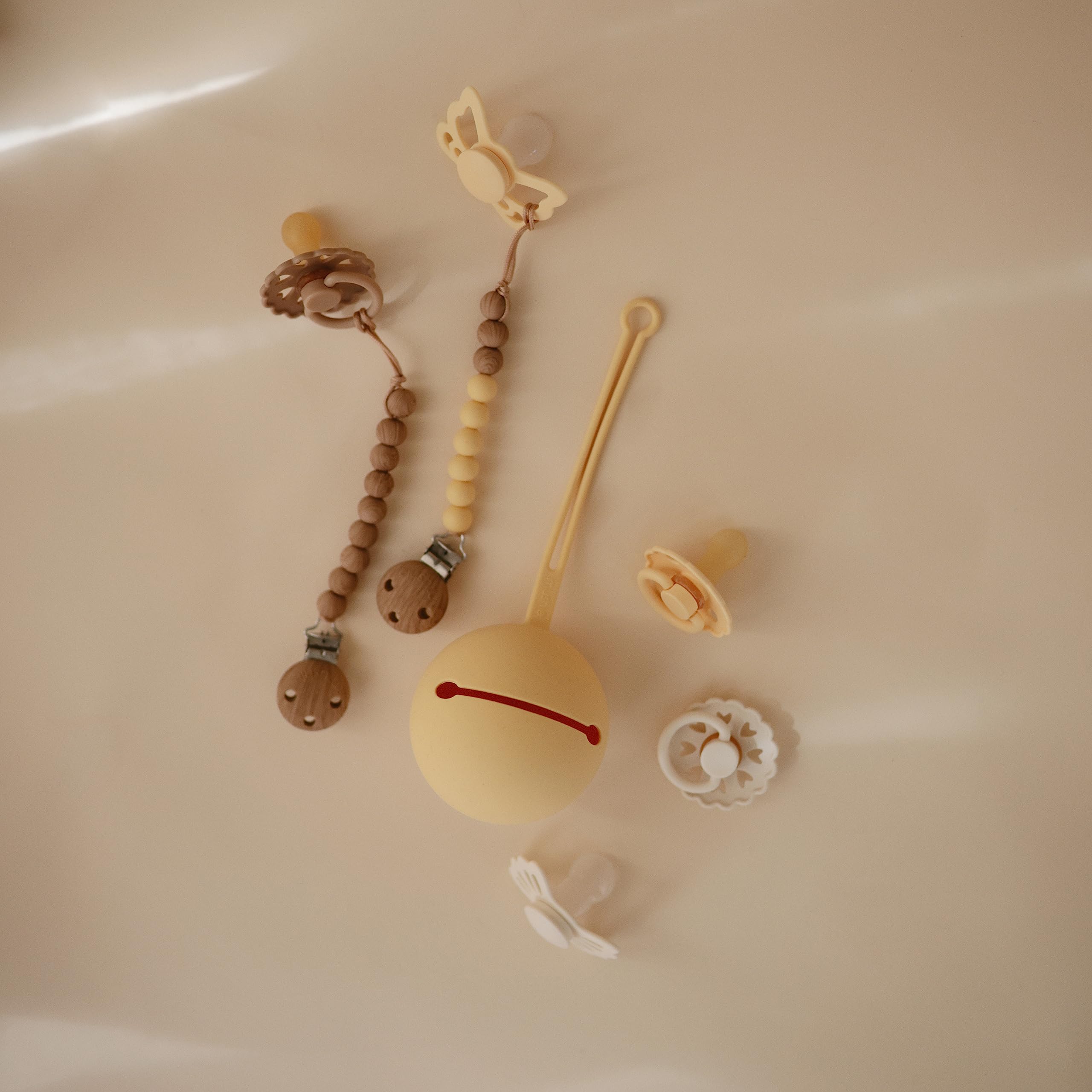 The Mushie silicone pacifier clip offers durability, function and simplicity to families on-the-go. Made from 100% food-grade silicone, our clip features a molded silicone clasp designed without screws as a modern take on a traditional favorite.
