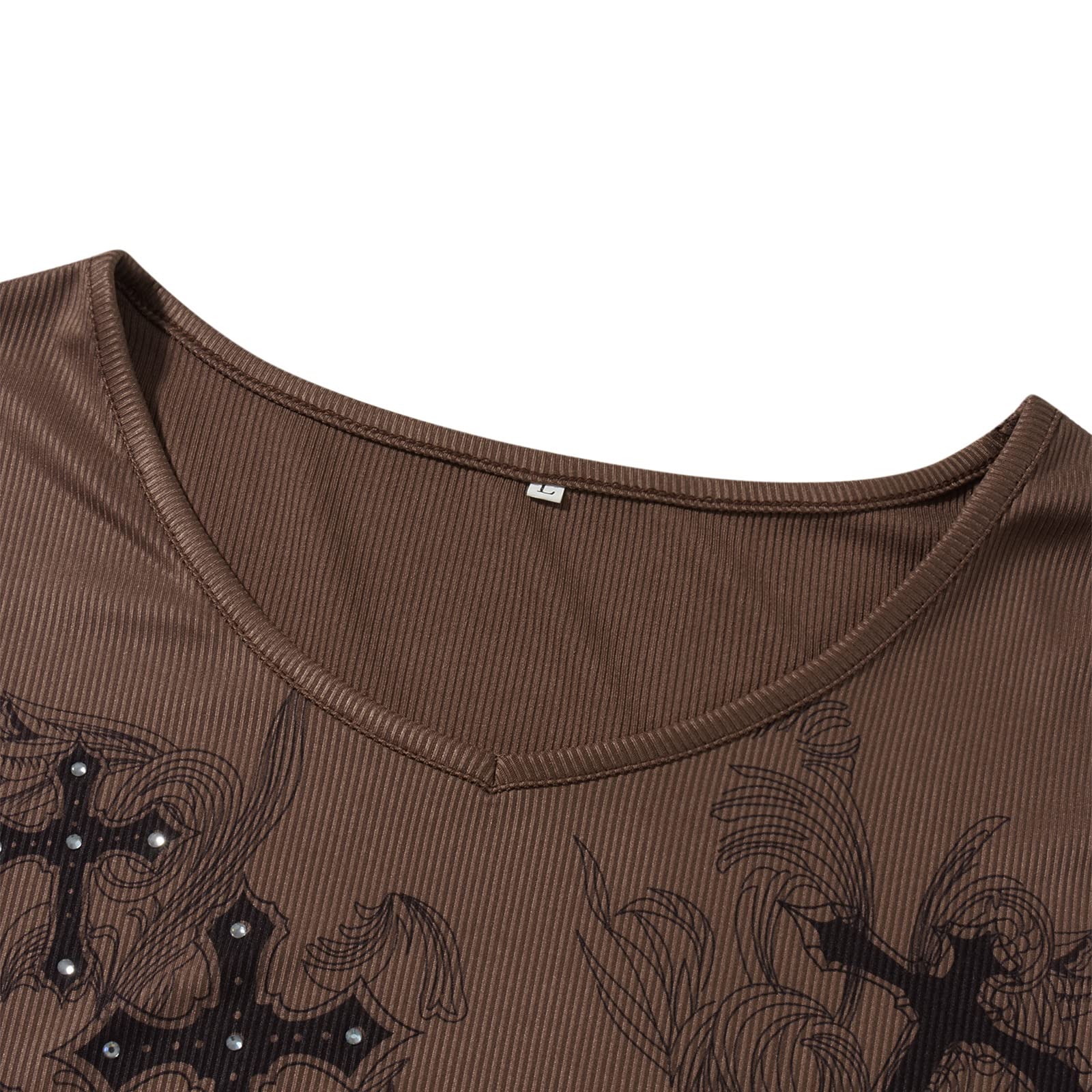 Style: Women vintage graphic print long sleeve crop top v neck tshirts fairycore grunge tees tops 90s e girl streetwear, y2k grunge fairy clothes, grunge shirt, 90s grunge aesthetic clothing, y2k shirt grunge, grunge clothing, shirts for teens girls aesthetic, tight long sleeve shirts for women, e girl clothing aesthetic, gothic punk y2k tops, cyber y2k fashion, cowgirl shirt y2k, 2022 trendy clothes for teen girls y2k, very chic and gorgeous.