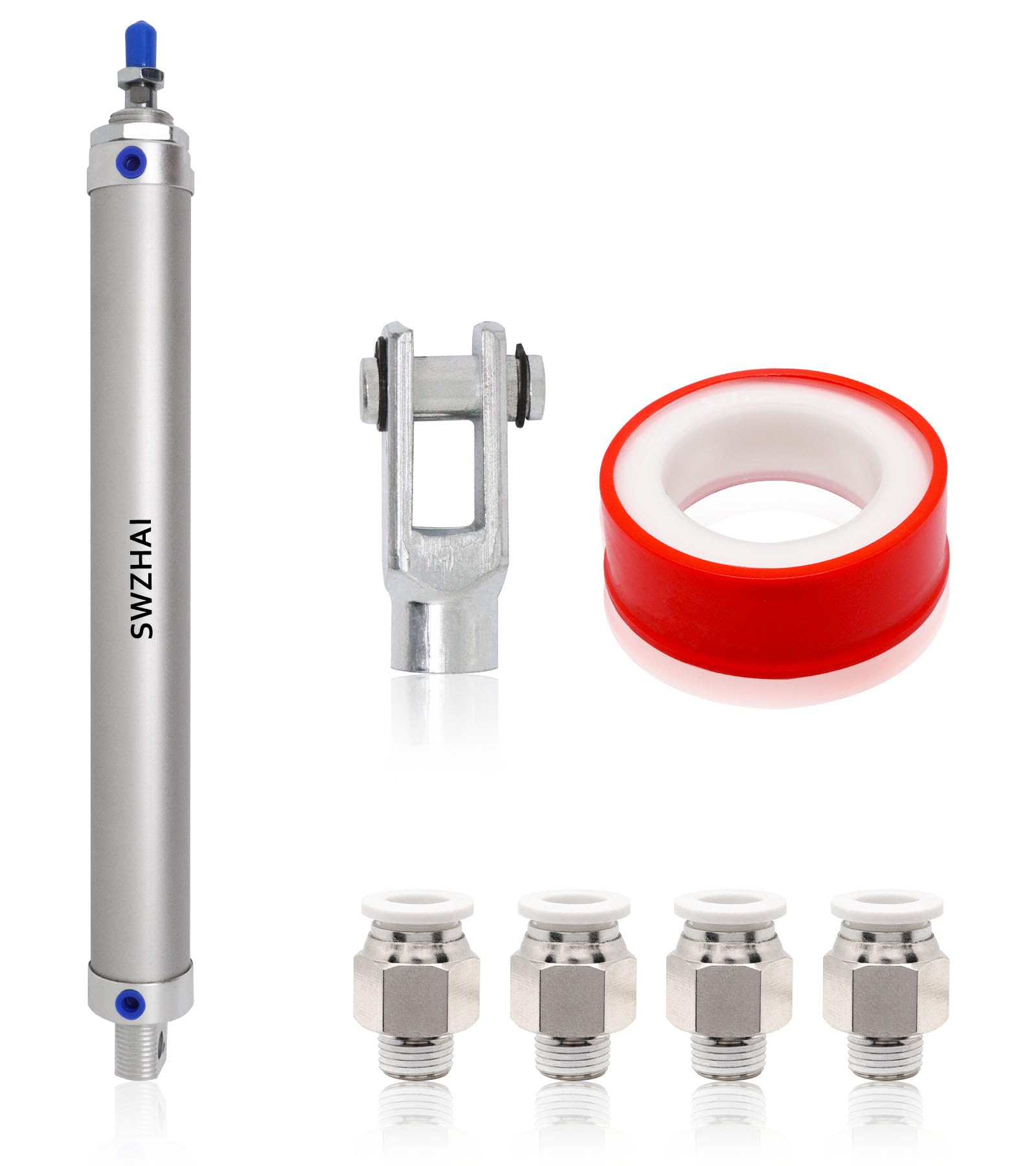 Package Includes - 1x MAL32 X 250 air cylinder, 1 x y connectors, 4 x pneumatic quick fitting. Pneumatic cylinder diameter: 32mm/1.26", stroke: 250mm/9.84", port size: PT1/8. Pneumatic air cylinder has a small diameter and quick response, making it suitable for high-frequency working environments.