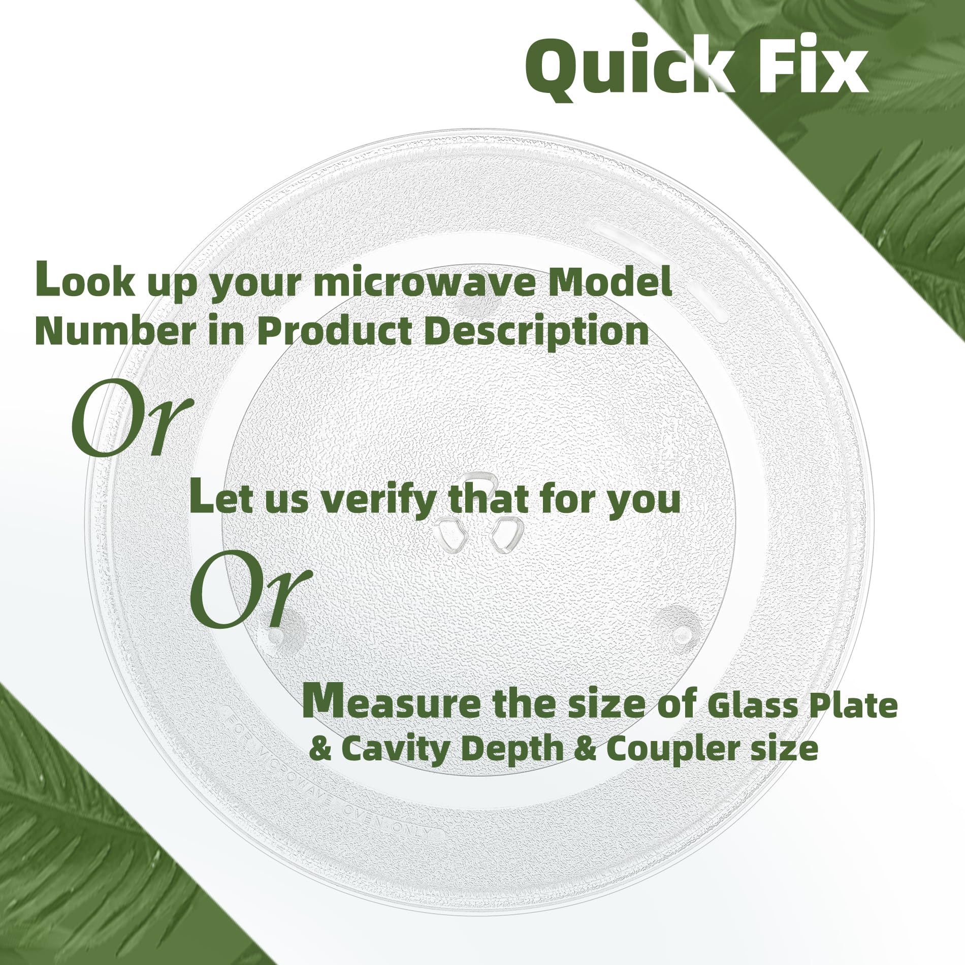【We know if it works】If you are unsure, feel free to contact us anytime. We will match the right replacement turntable plate for your microwave oven. Just send us a snapshot of the model number and interior of your microwave, and we will fix it