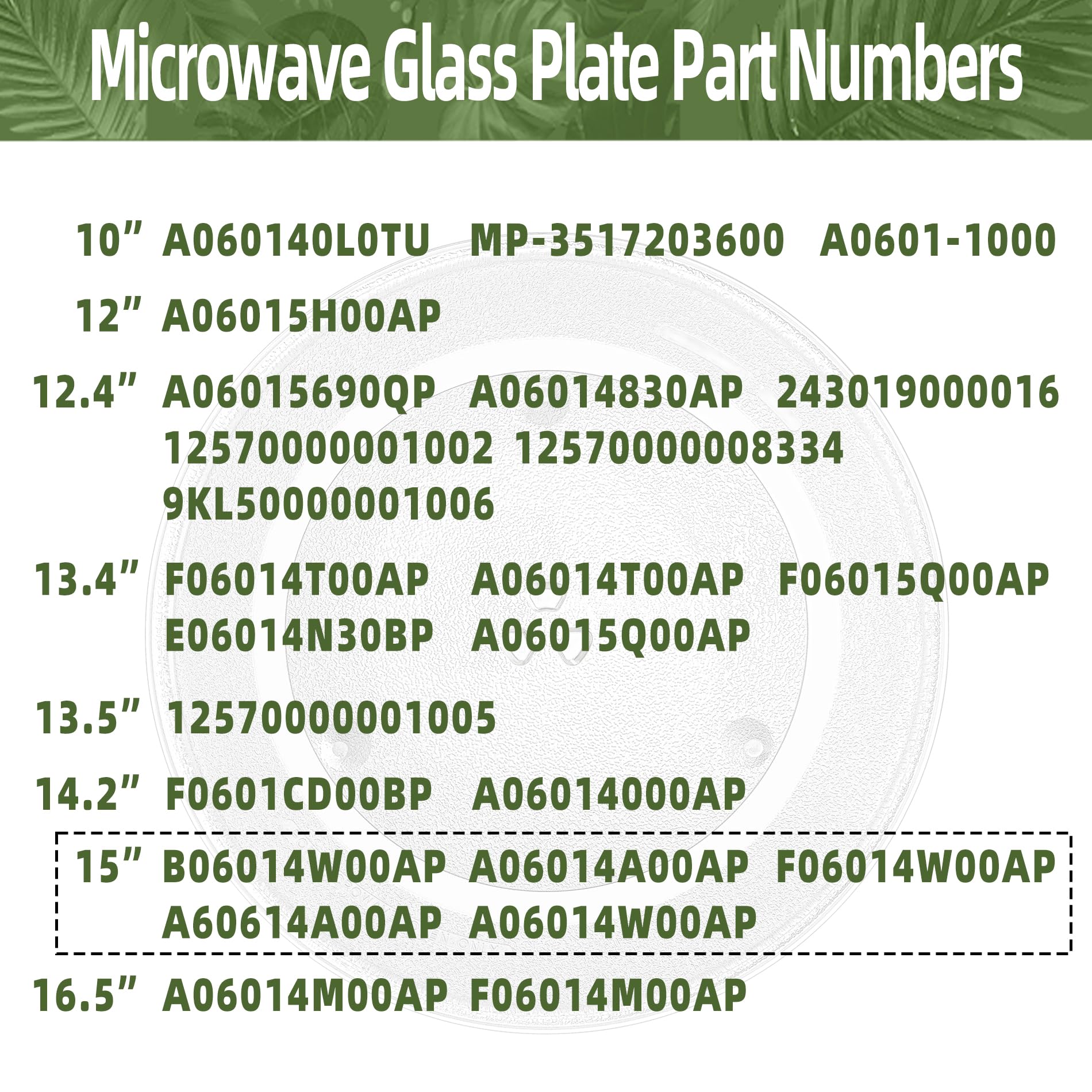 【Part #】The 15 inch microwave plate replacement can replace broken or soiled Part # B06014W00AP, A06014A00AP, F06014W00AP, A60614A00AP, A06014W00AP Panasonic microwave glass plate