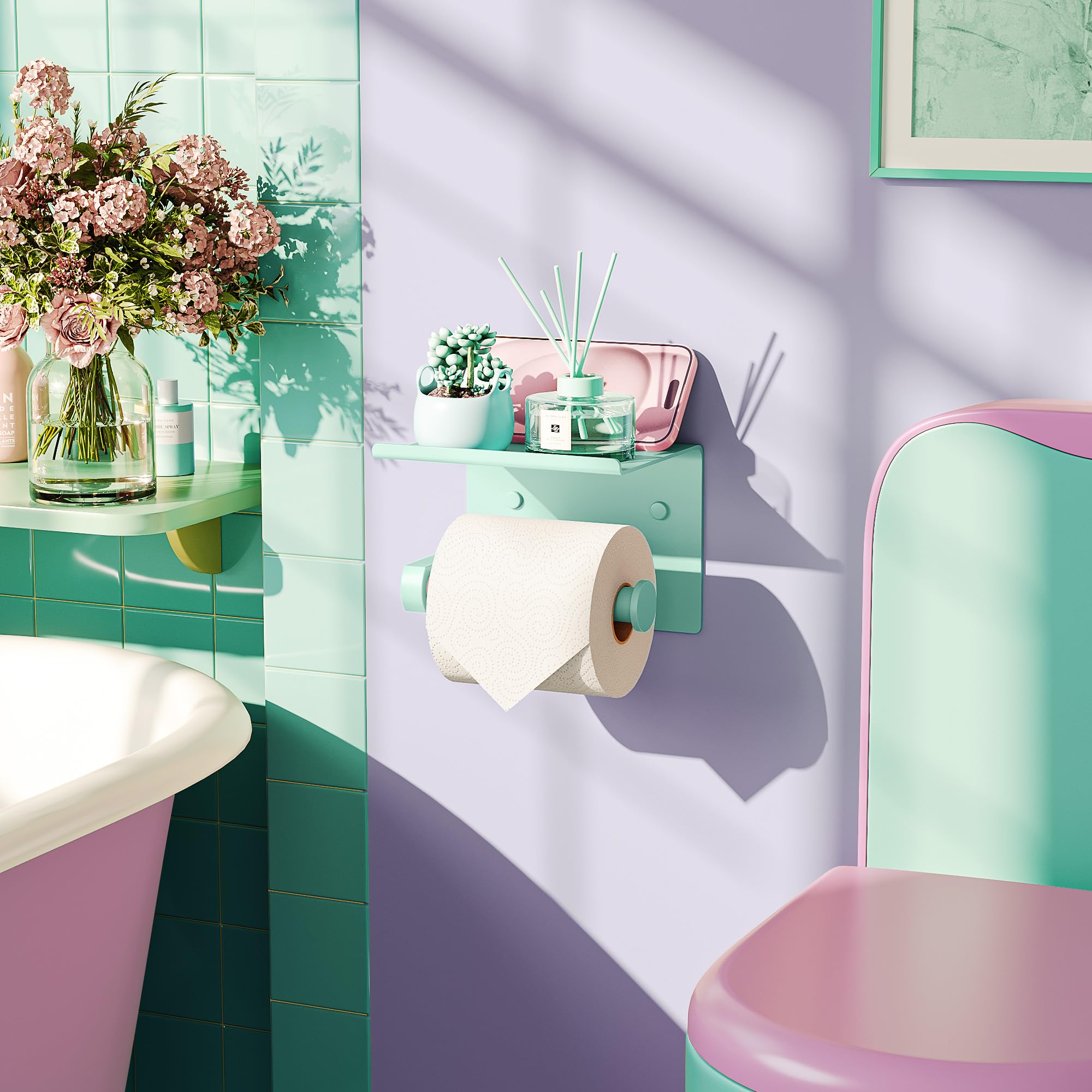 MODERN & STYLISH DESIGN: Mint Green painted, waterproof, rust-proof and corrosion resistant, bathroom toilet paper holder fits a variety of home decor style, add modern home atmosphere and save your efforts from organizing bathroom and kitchen. Standard process builds delicate finish that is beautiful and long lasting.