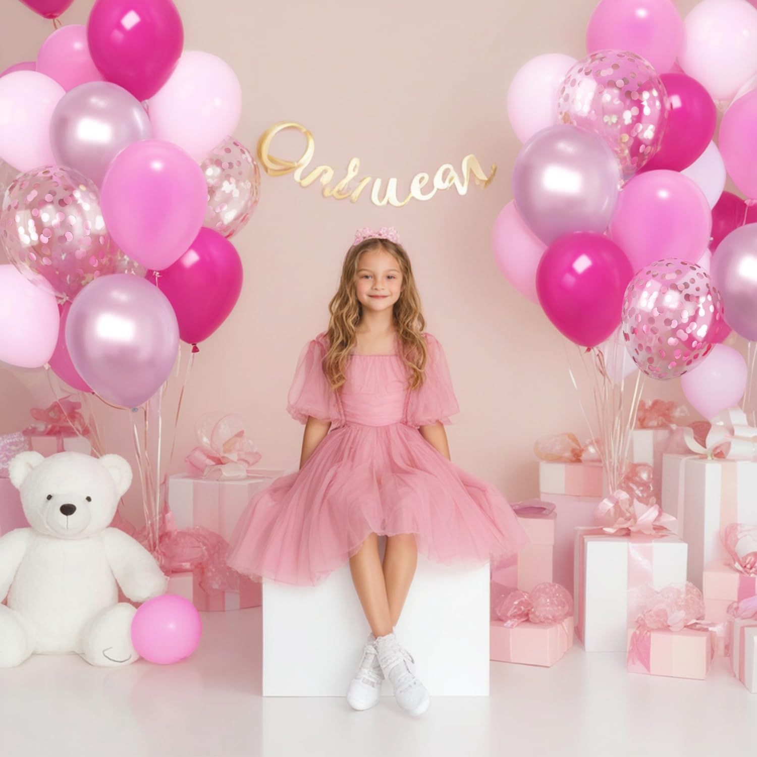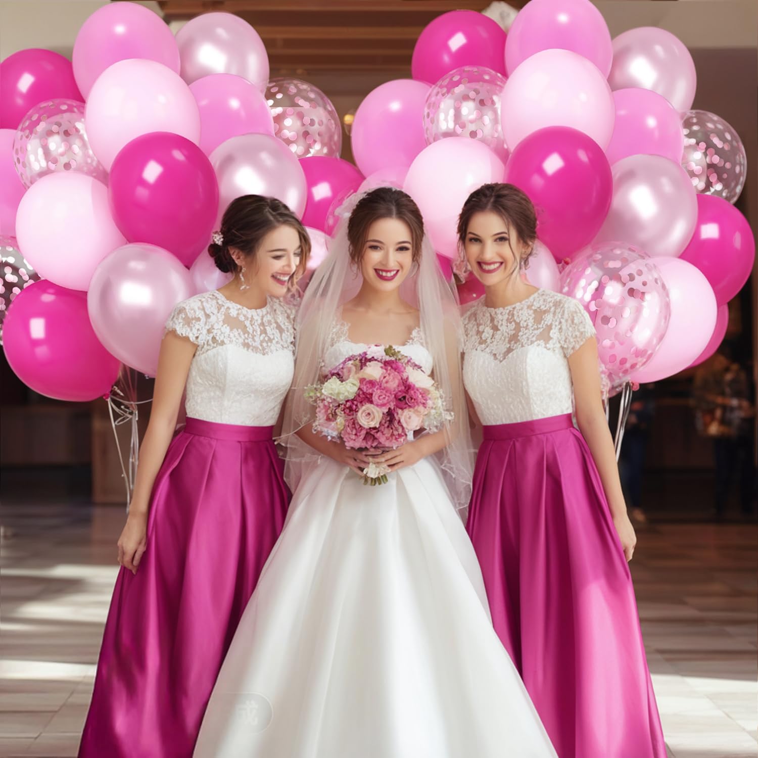 Our hot pink confetti balloon set includes: 10pcs 12inch light pink balloons 10pcs 12inch pastel pink balloons 10pcs 12inch hot pink balloons 10pcs 12inch metallic pink balloons 10pcs 12inch pink confetti balloons 1 pieces pink ribbons What occasions can you use pink balloon decorations for? Weddings Anniversary Valentines Bridal Shower Engagement Gender Reveal Decorations Valentine's Day Decorations Birthday Party Decorations Friendly Tips: 1. Inflating balloons with a pump instead of mouth is highly recommended. 2. Please control to inflate balloons within the maximum dimension(12 inch). Over-inflation may blast.