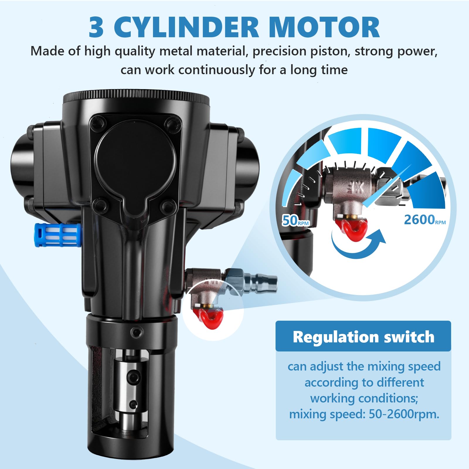 【Stepless speed regulation】:A valve at the inlet allows you to adjust the speed of the mixer according to the viscosity of the paint.