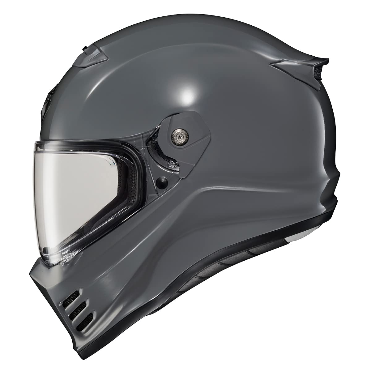 VISION: FREE Additional Dark Smoke Everclear fog-free shield included (except for VTwin has Silver Mirrored and Original Litas Gold Mirrored). Pinlock shields are sold separately. Scorpion EXO’s shield ratchet system pulls the shield securely against the eye port, ensuring a proper seal. The EverClear shield offers state-of-the-art fog-free technology and 95% UV-A & UV-B protection. This optically superior shield features a shatter-resistant, anti-scratch hardened coating.