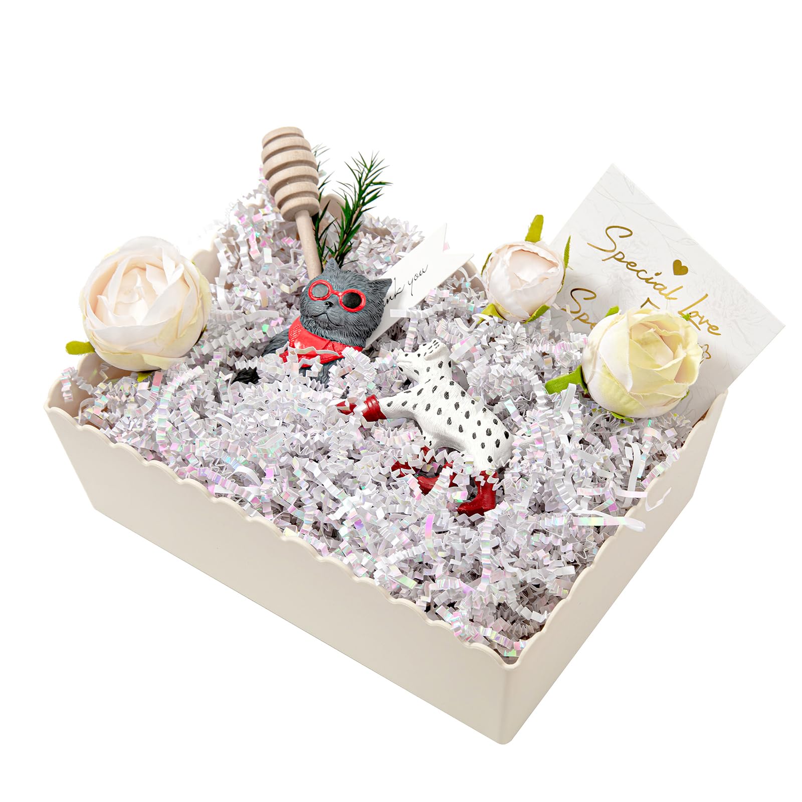 Wide Usage Basket Filler: This gift box filler can be used in any occasion such as Christmas, Halloween, Thanksgiving, Wedding, Valentines' Day, Easter, Birthdays, Anniversaries, Graduations and etc.Add an extra festive touch.