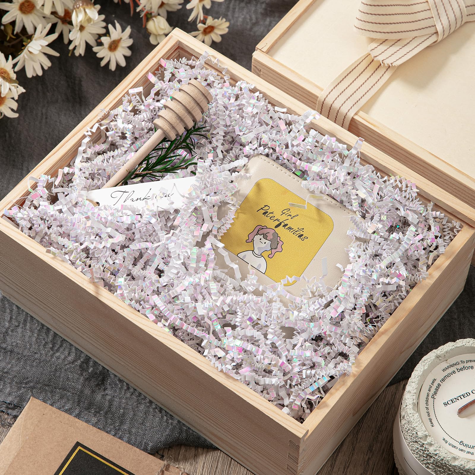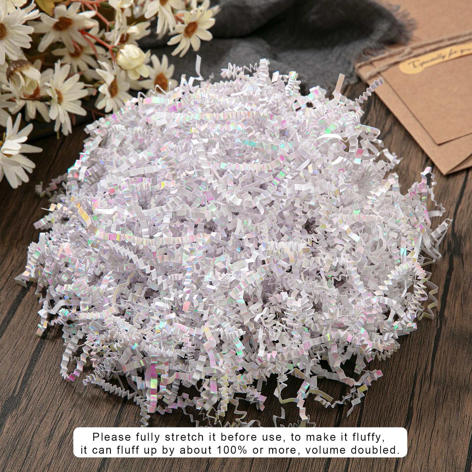 Shredded Paper for Gift Box: Decorate your gift with this diamond white crinkle paper to fully display your gift and make your gift more attractive.Perfect to fill the extra spaces in your gift boxes or basket.