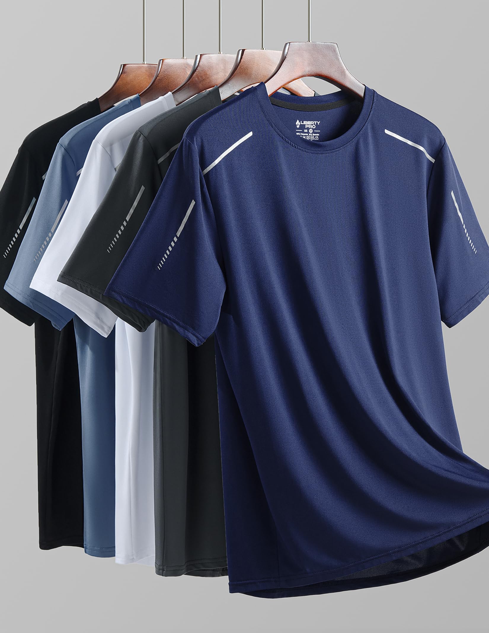 ATHLETIC CREWNECK SHIRTS: Elevate your workout gear with our pack of 5 premium men's athletic crewneck shirts. These shirts provide the perfect blend of comfort and performance, whether you're pumping iron, hitting the track, or just running errands.