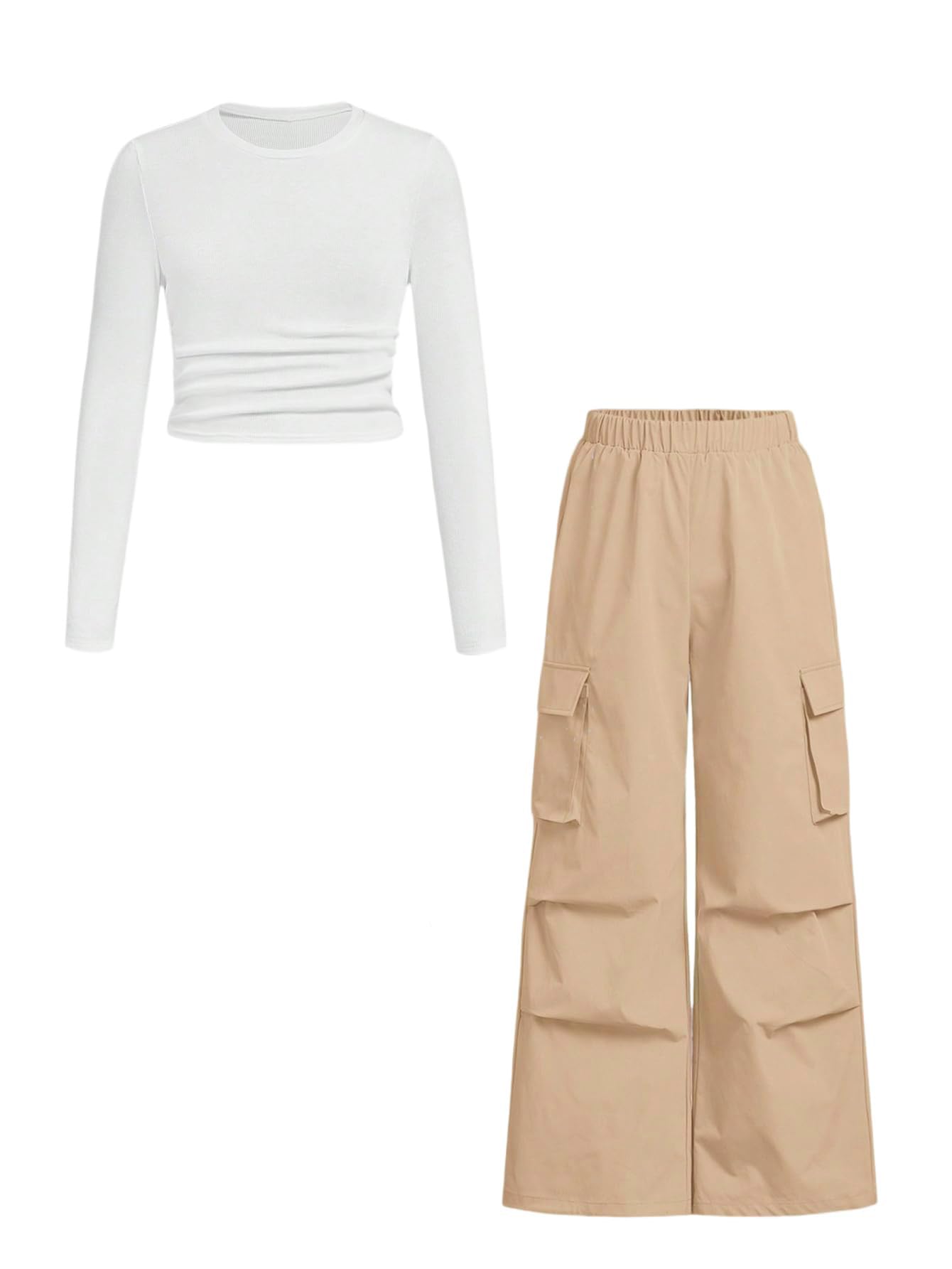 Material: Mmade of soft and breathable fabric, gentle on tween girls' skin, ensuring comfort during daily activities. The cargo pants feature lightweight and durable fabric, suitable for spring and autumn, keeping kids comfortable whether running or playing.
