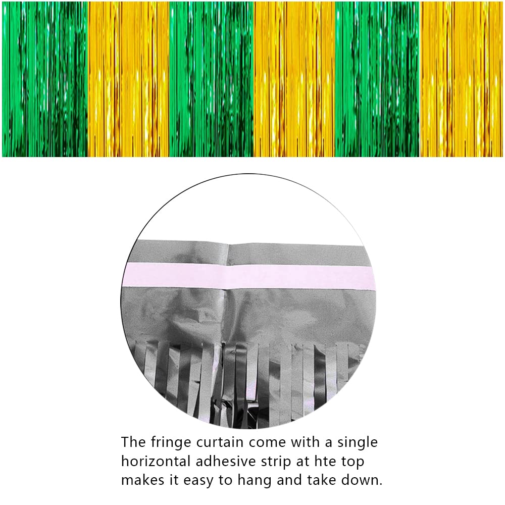 Green and Gold Graduation Party Backdrop St. Patrick's Day Foil Fringe Curtains St Patricks Day Party Decoration Green gold foil fringe curtain backdrops 1. Comes with a single horizontal adhesive strip at the top, which runs the whole way from left to right. 2. Quick setup. Has an adhesive across the top that sticks to the wall or doorway. 3. This was a fantastic addition to graduation birthday party.