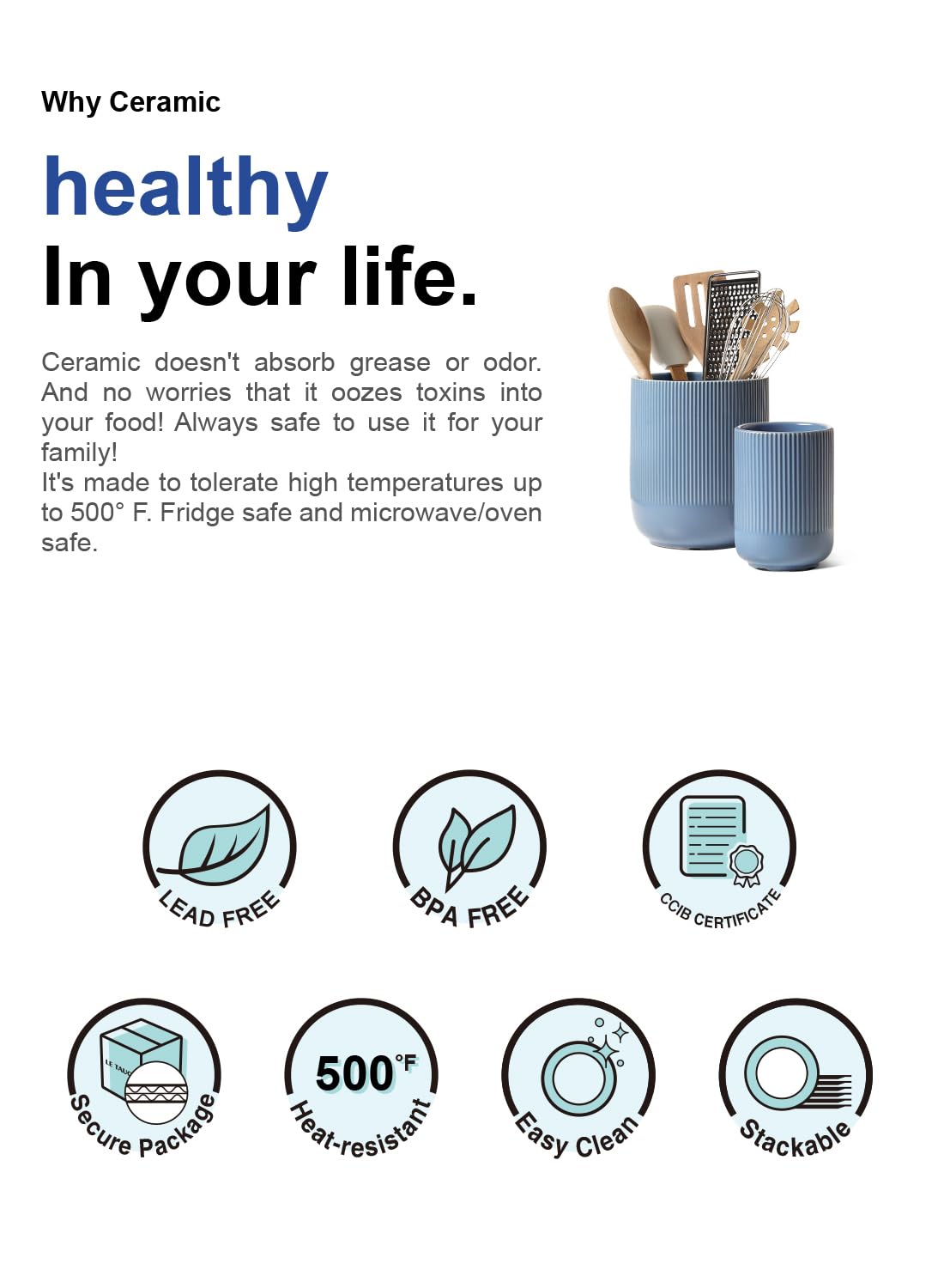 Solid and Secure: This utensil holder for kitchen counter provides easy access to your utensils, offering a stable and relaxing experience due to its substantial weight; Crafted from premium ceramic materials, these holders are not only robust but also easy to clean; Rest assured, they will remain securely in your countertop, giving you peace of mind while using them
