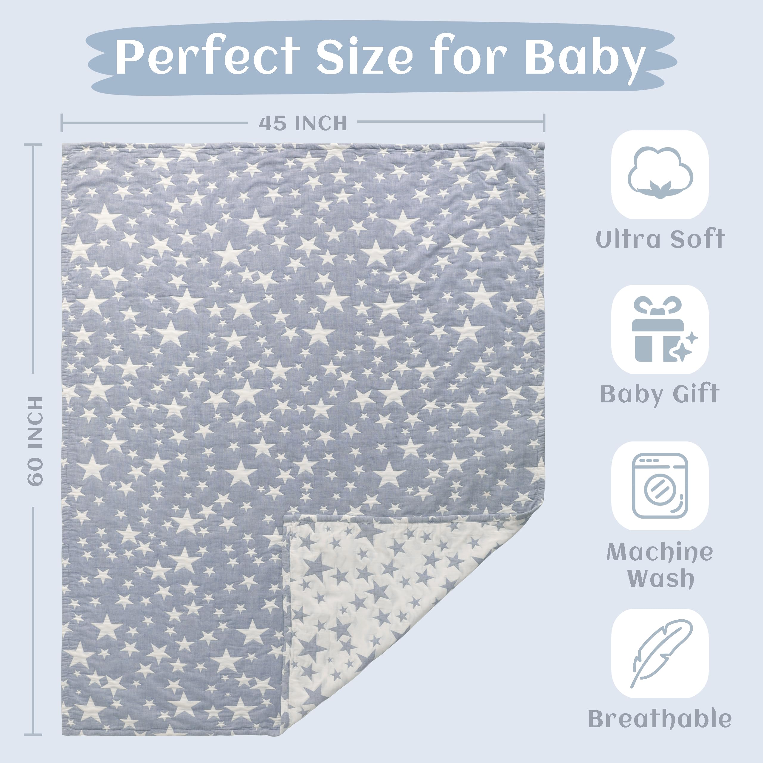 Versatile for Daily and On-the-Go Use: Ideal for tummy time, stroller rides, car seats, daycare naps, travel, cuddling, picnics, or as a light throw. This blanket works well for layering and daily comfort, but is not intended as a heavy or insulated winter blanket.