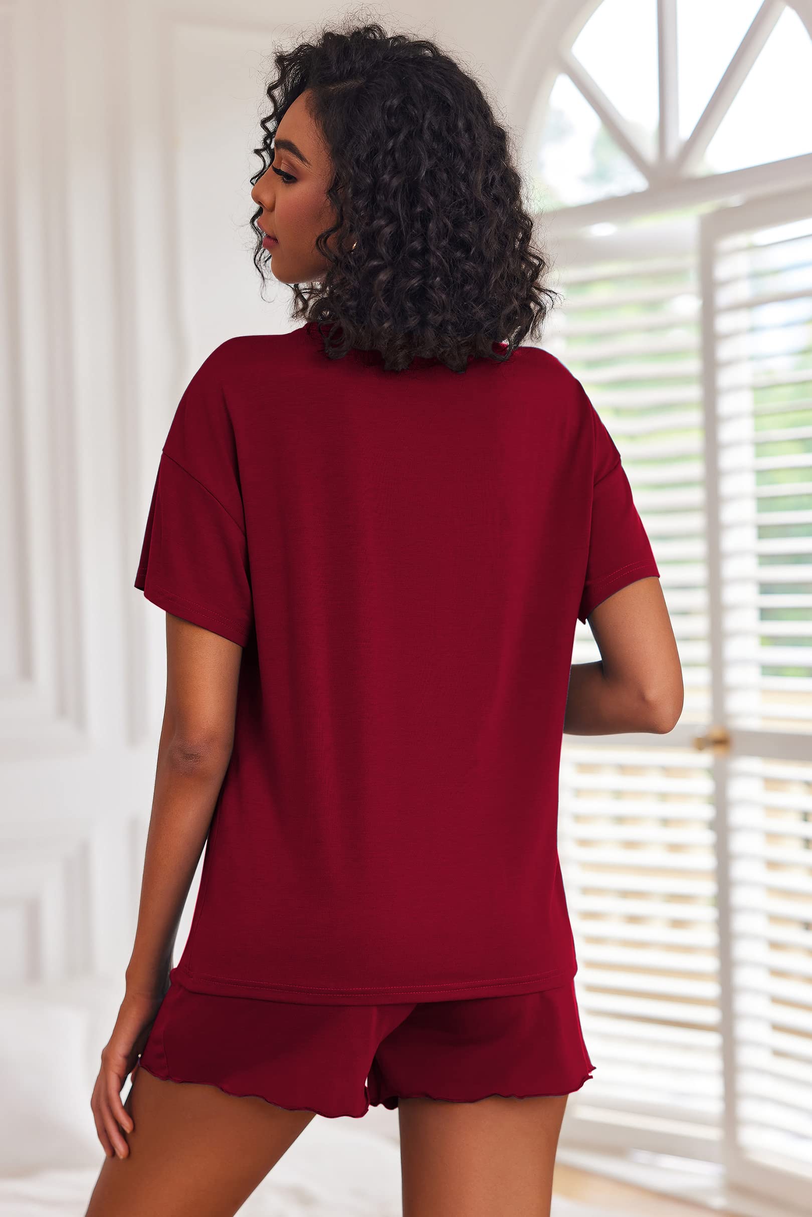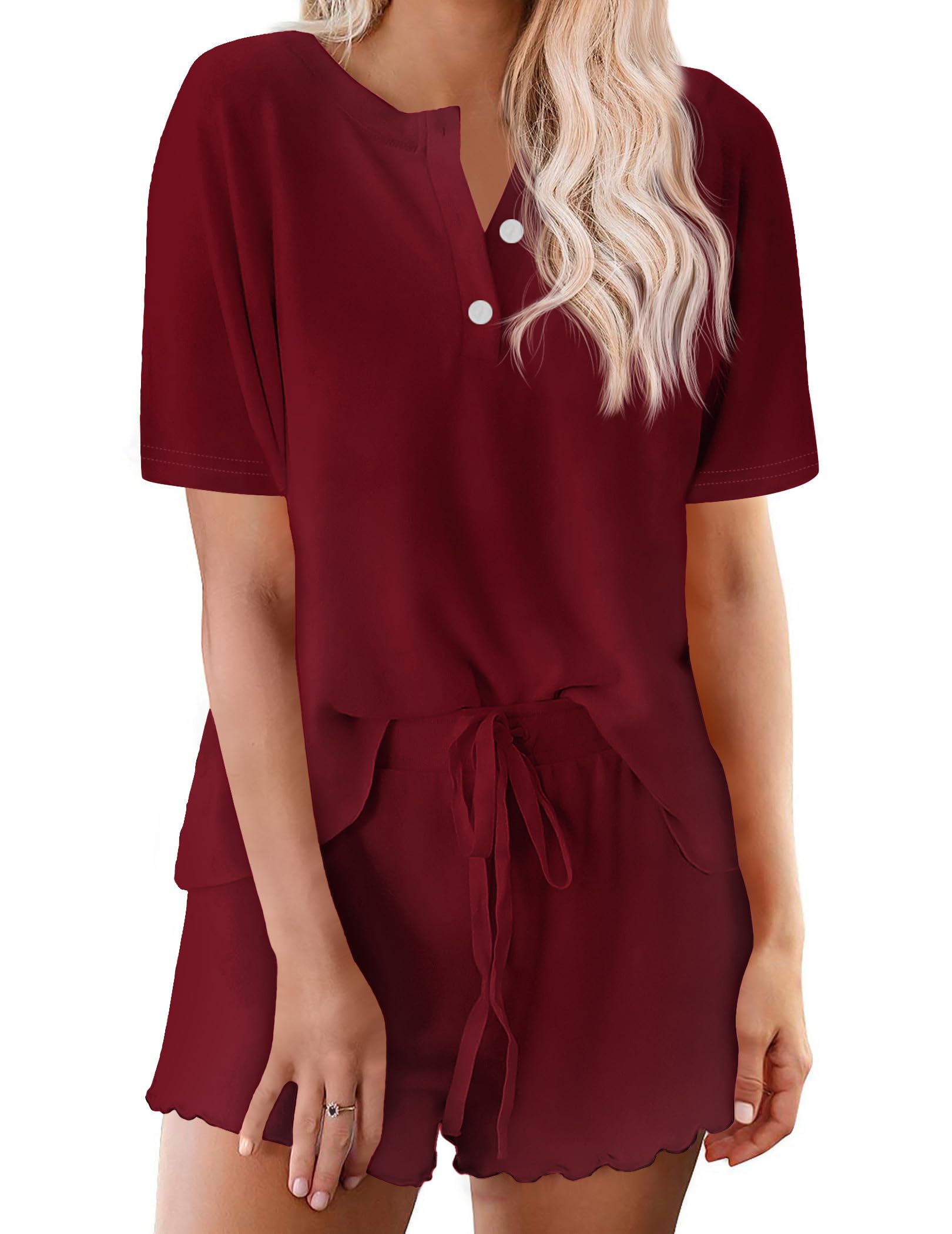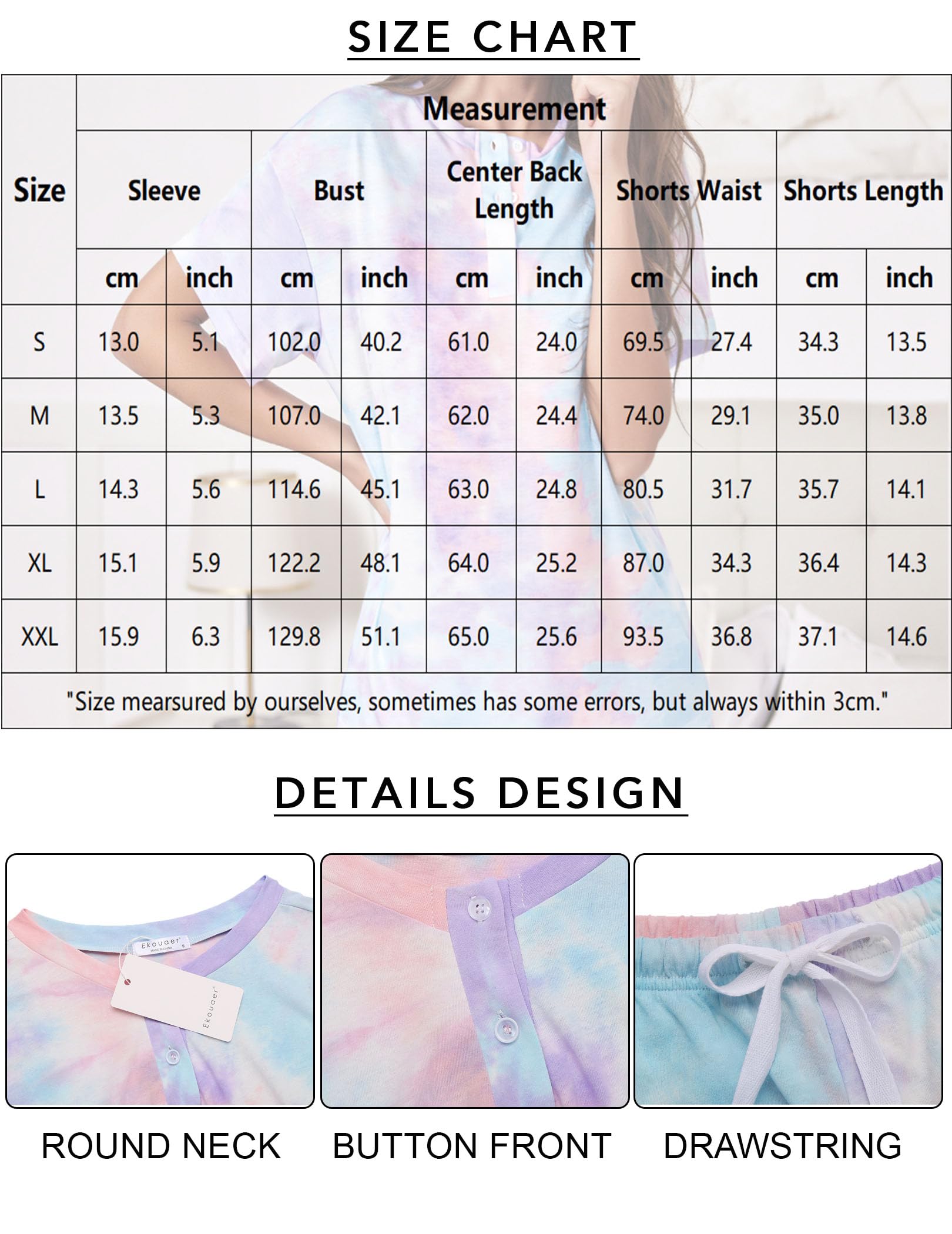 Fashion & Comfy Design:Button down henley neckline, short sleeve t-shirt pajamas tops with drawstring elastic waistband pajamas shorts,adjustabled depend on your need. 2 piece pj sets nightwear sleepwear is perfect for women, juniors, ladies and teens