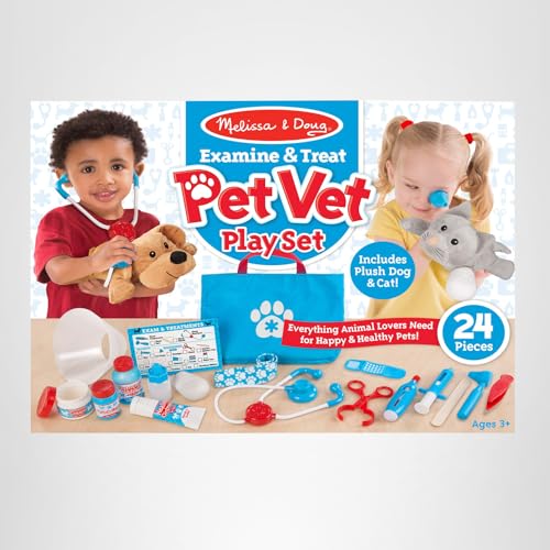Melissa & Doug Examine and Treat Pet Vet Play Set, 24-Piece Animal Doctor Playset with Dog & Cat Plushies, Pet Doctor Kit & Accessories, Preschool Toys for Girls & Boys Ages 3+