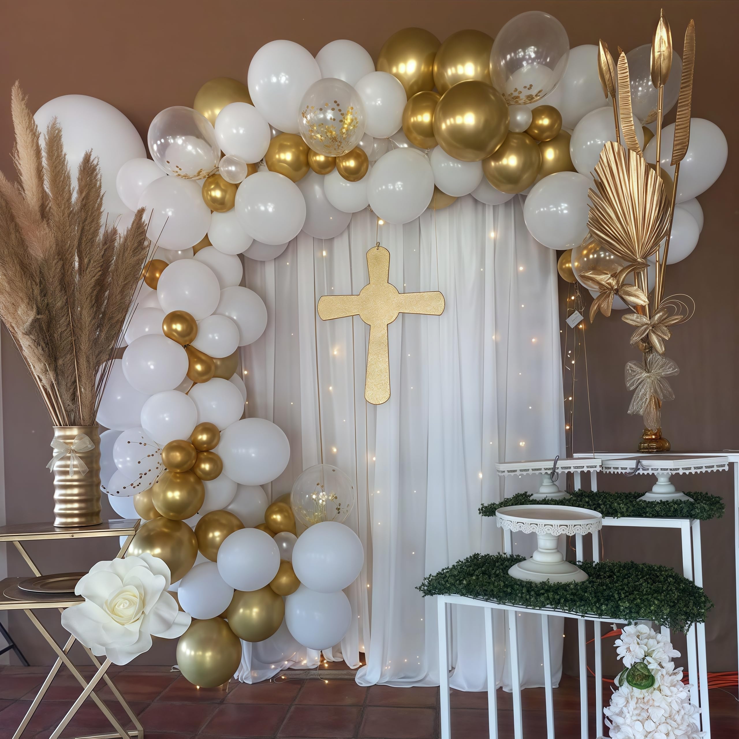 🎉 White Gold Balloons - You will get 35 pieces 12 inch latex party balloons set, includes matte white 15pcs, metallic gold 10pcs, gold confetti 10pcs, come with 1pc gold balloon ribbon. Perfect for women men birthday baby bridal shower wedding engagement party decorations supplies.