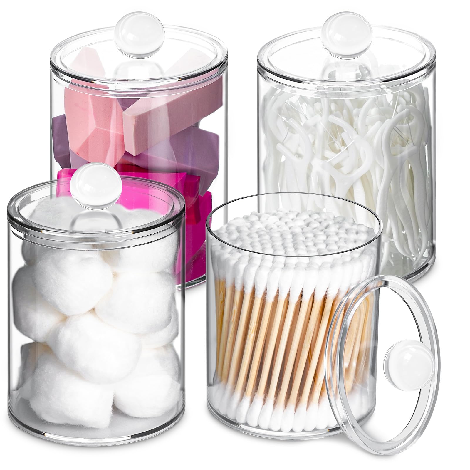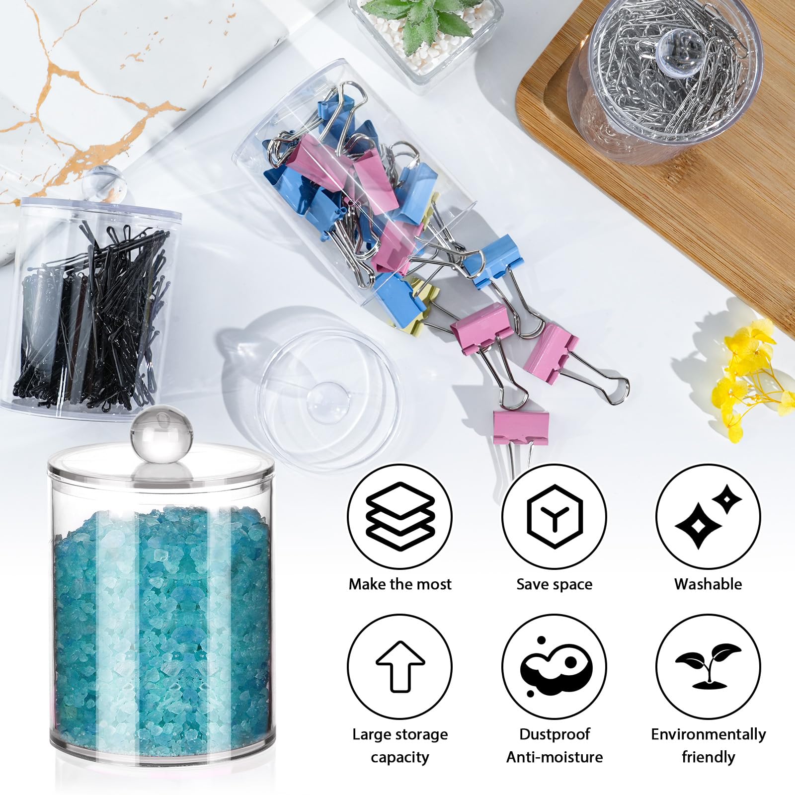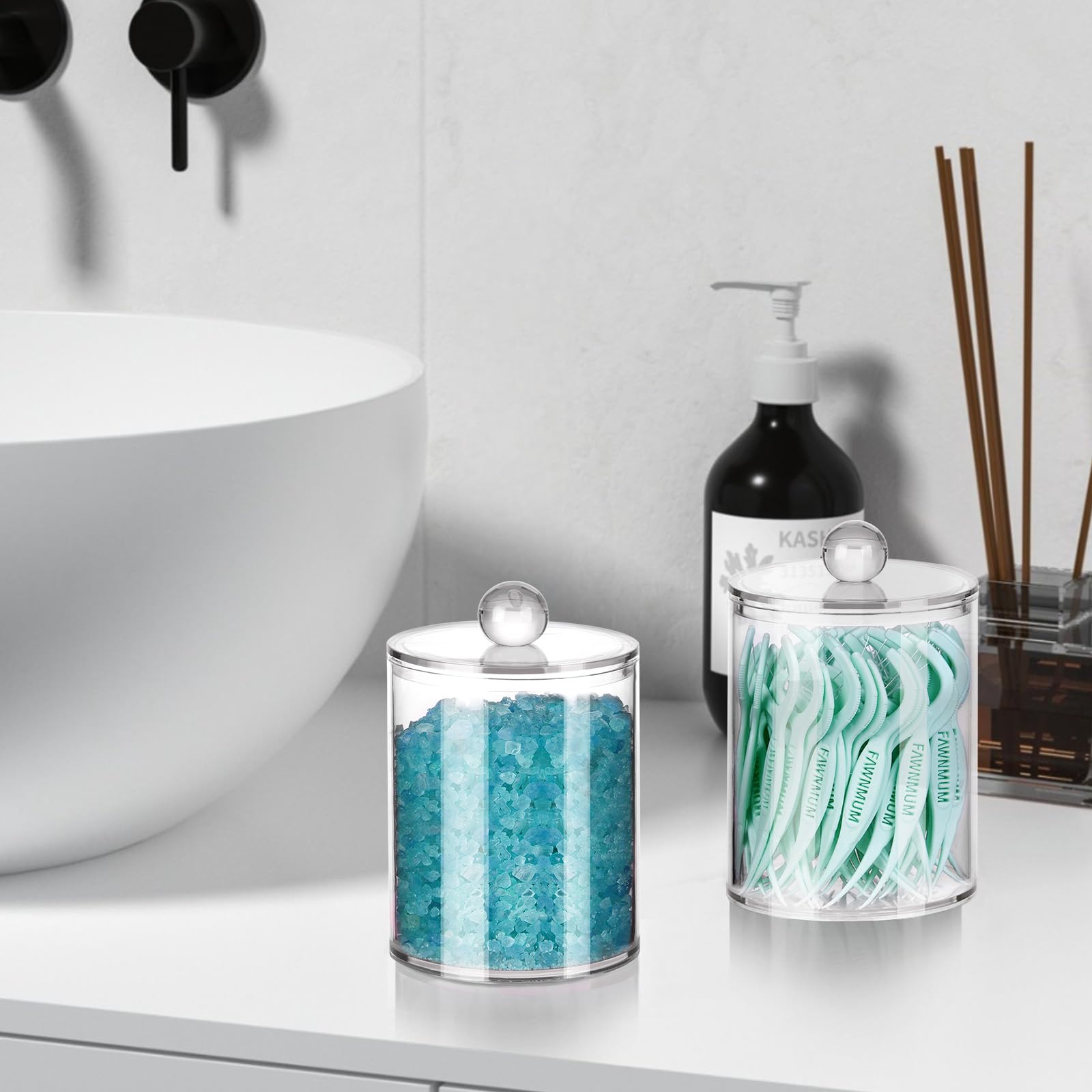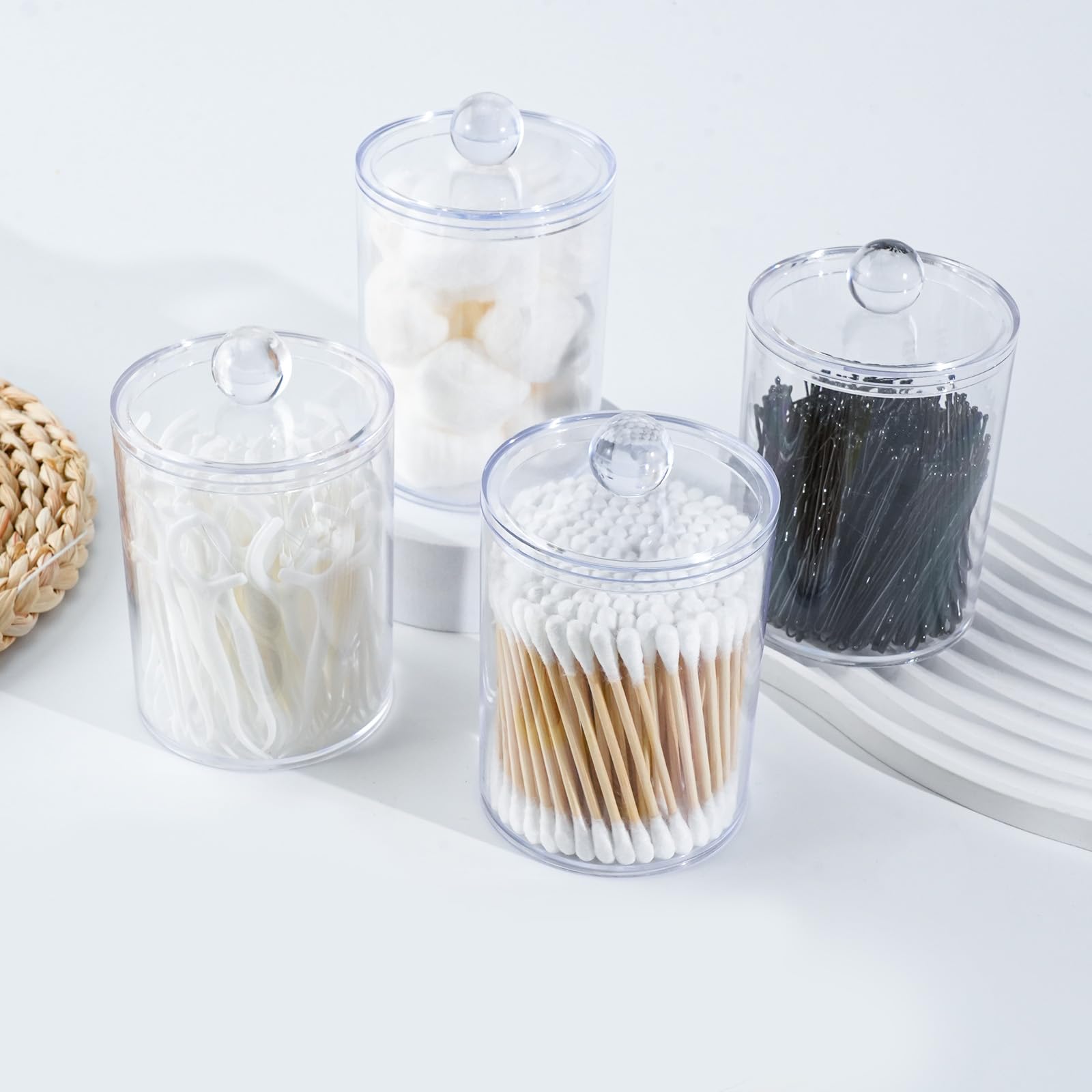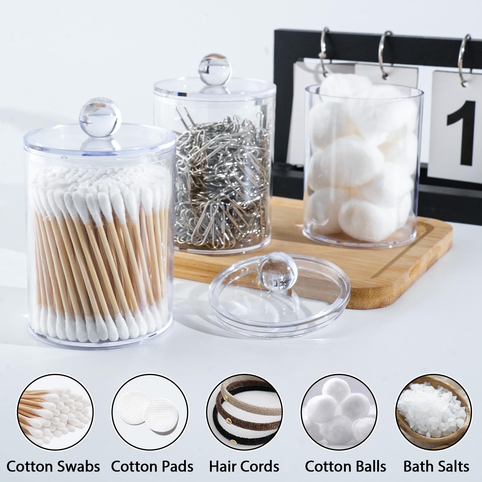 PRODUCT INCLUDES:Product includes 2 x 10 oz,2 x 12 oz cotton swab jars with lids, smooth edges, safe and unbreakable