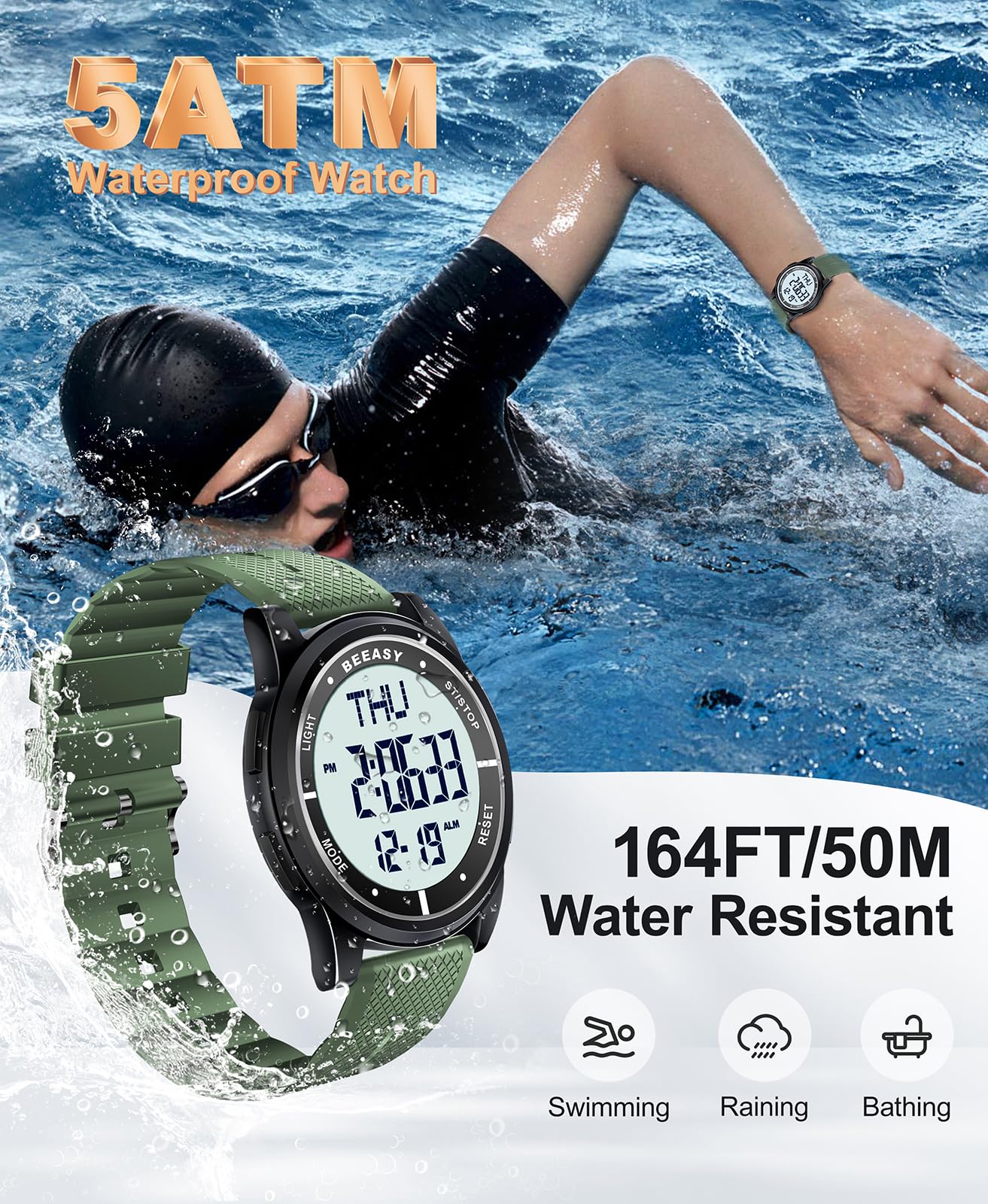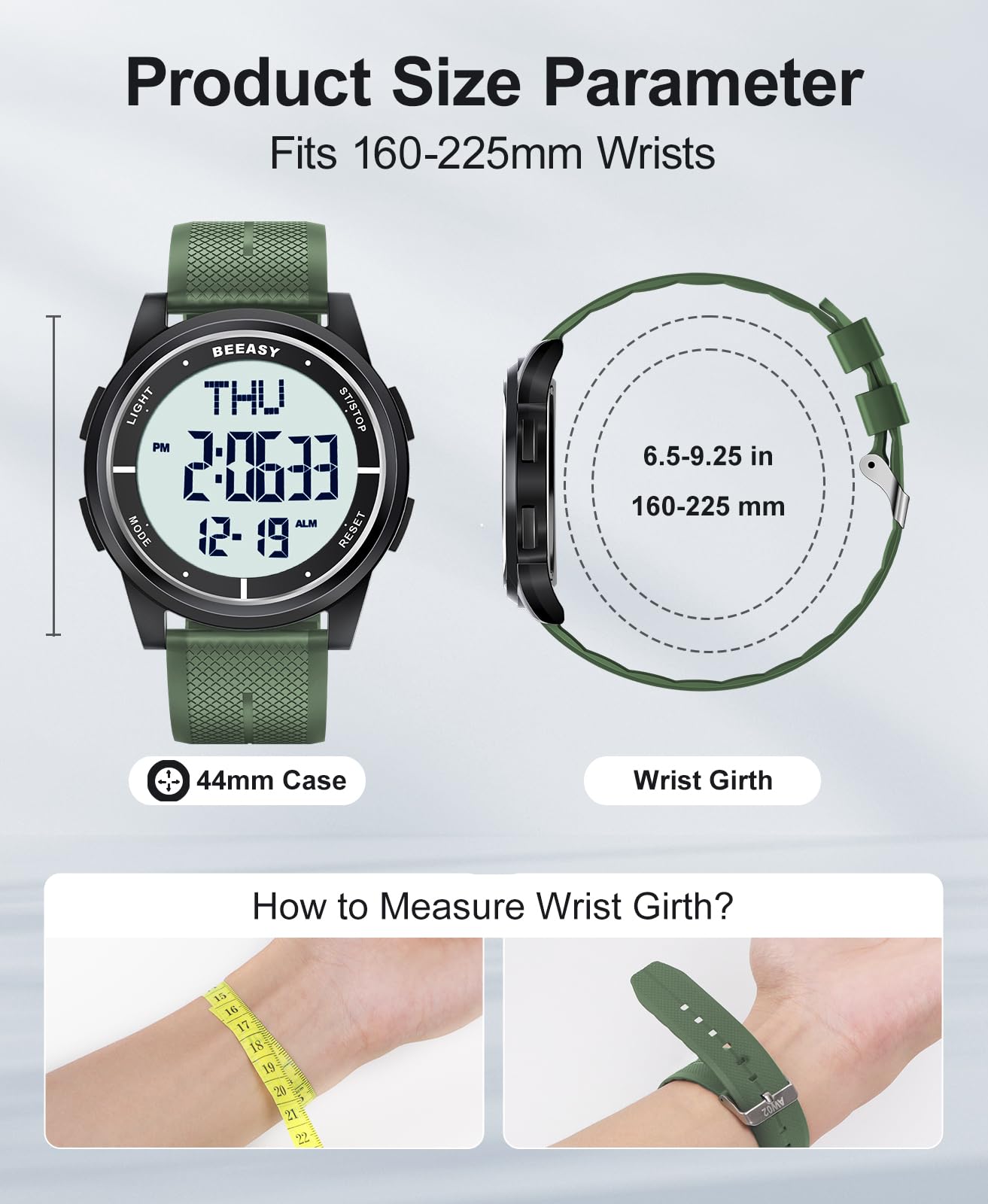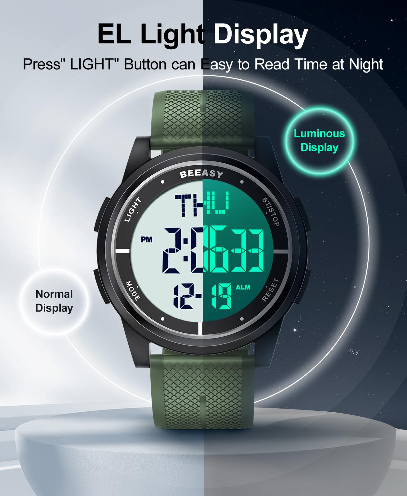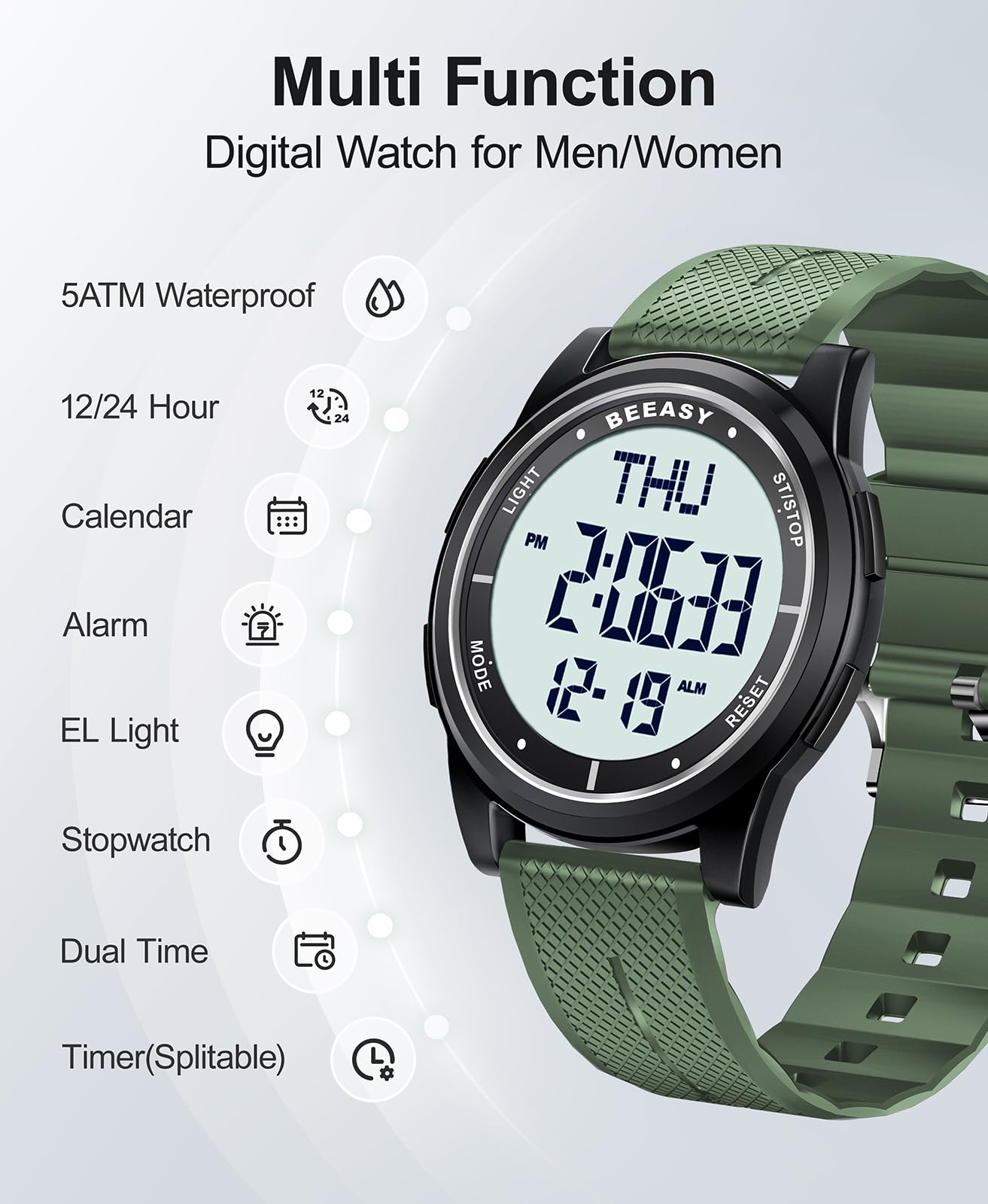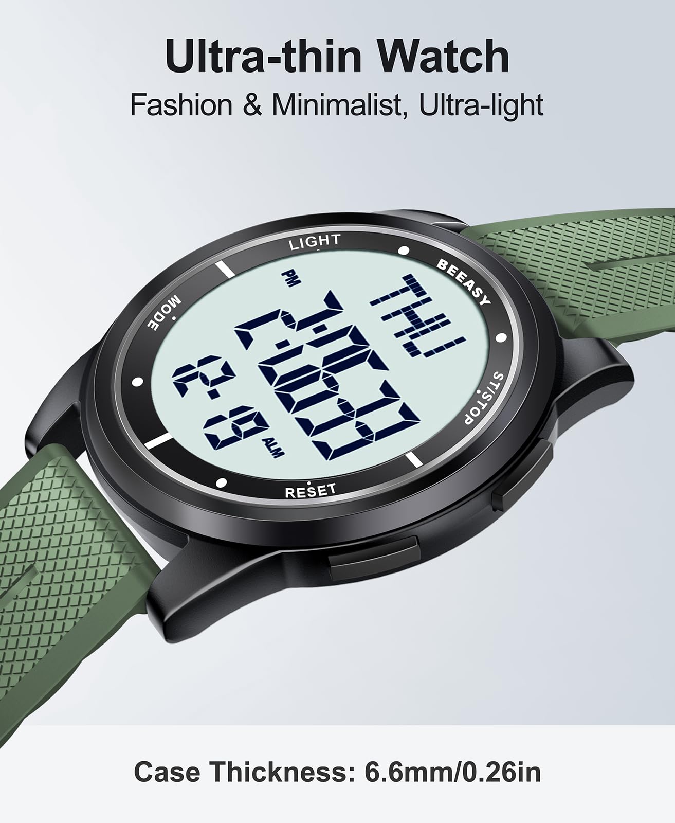 Description Ultra-Thin Digital Watch – Sleek, Waterproof & Multi-Functional Versatile & Stylish Design Designed for both men and women, this ultra-thin (6.6mm) digital watch combines modern minimalism with high functionality. Its sleek case and textured band offer a lightweight, comfortable fit for all-day wear. Crystal-Clear EL Backlight Display Features a wide-angle digital screen with bright EL backlight, ensuring effortless readability day or night. Perfect for low-light conditions, workouts, or travel. 50m Water Resistance – Swim & Shower Safe Built for active lifestyles, this watch is waterproof up to 164ft (50m), making it ideal for swimming, showering, and rainy weather. Smart Multi-Function Features 12/24-hour time format Date & day display Alarm, stopwatch, and countdown timer Dual time zone support (great for travelers) Durable & Comfortable for Everyday Wear The scratch-resistant screen and flexible textured band ensure long-lasting durability, while the ultra-lightweight build keeps it comfortable for work, sports, or travel. Perfect for Active Lifestyles Whether you're swimming, running, traveling, or working, this digital watch keeps you on time with reliable performance and sleek style.