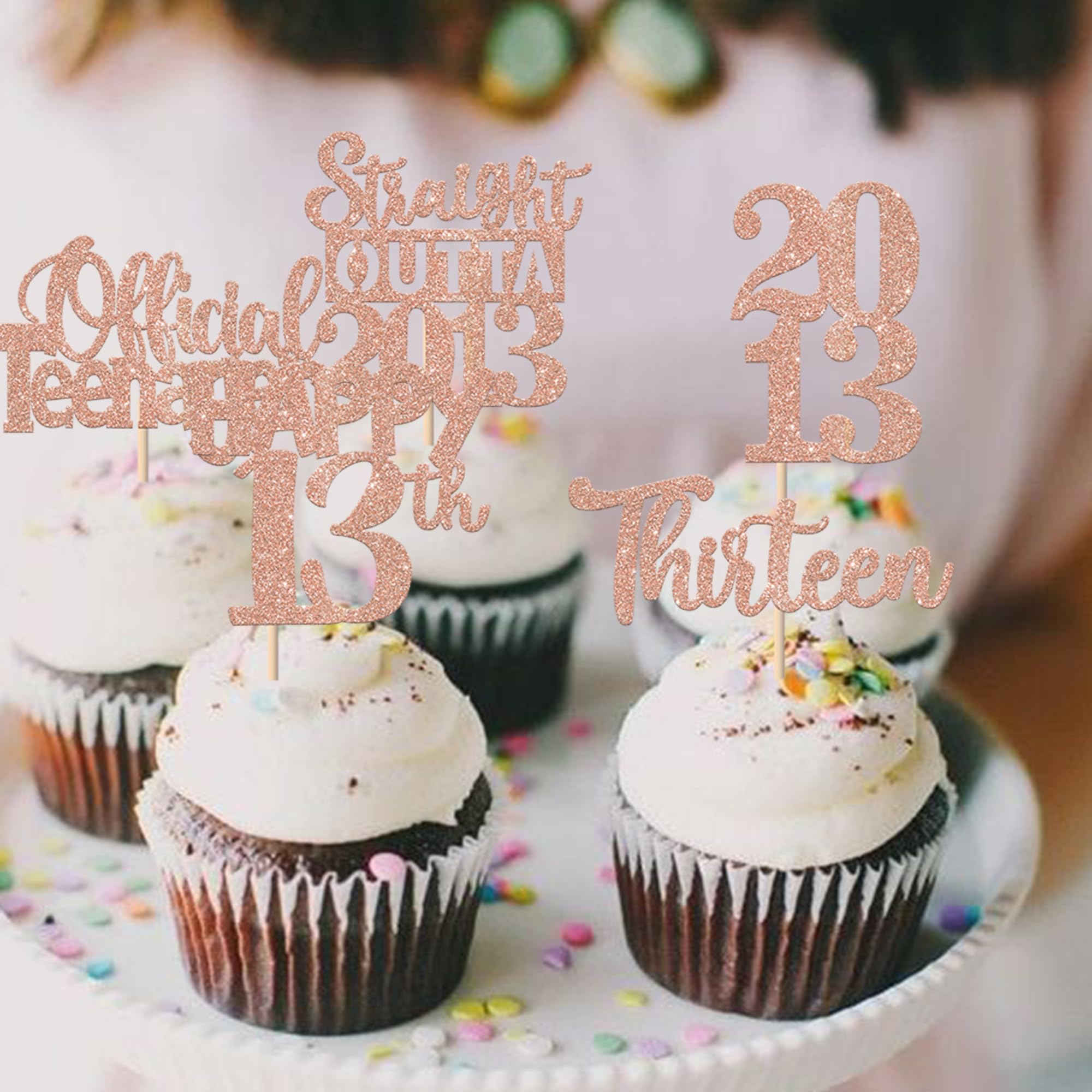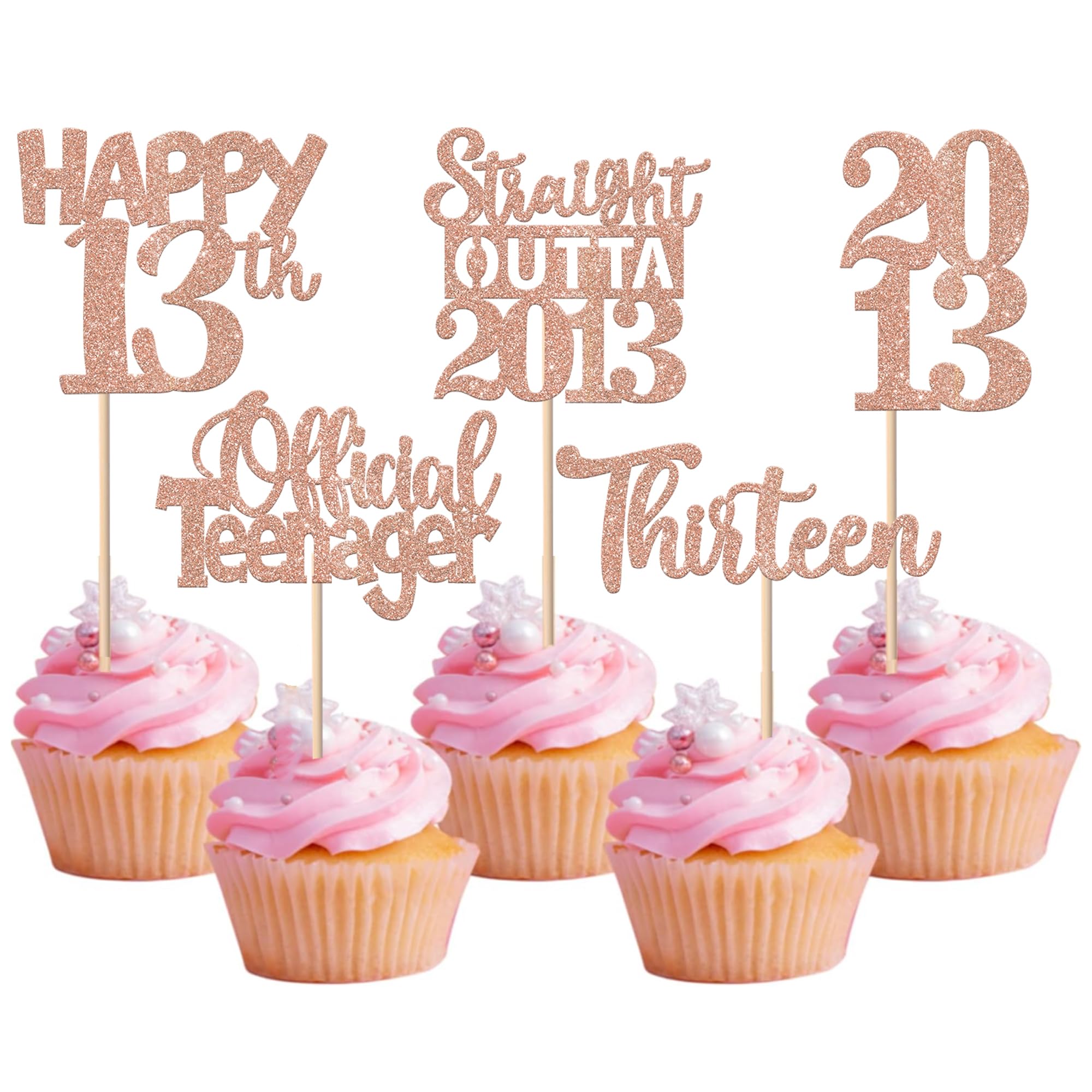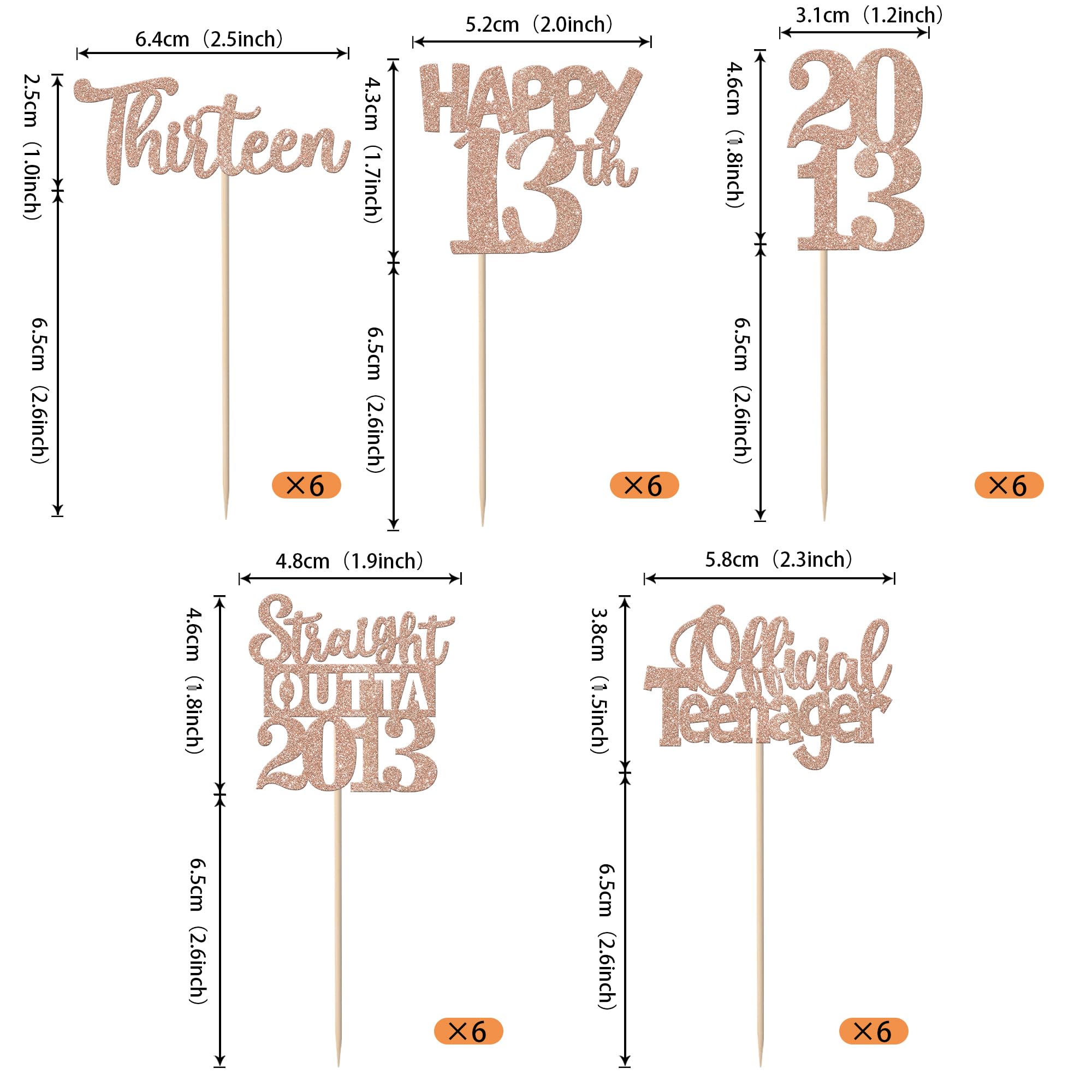 Straight Outta 2013 Cupcake Toppers for Happy 13th Birthday Anniversary Party Cake Decorations Supplies Perfect for happy 13th bithday theme party, straight outta 2013 theme party, 13th wedding anniversary theme party,cheers to 13 years theme party cupcake decorations supplies. Pack of 30 pcs,6 pcs of each design The size is 1.9*4.6 inch / 1.3*3.9 inch / 2.1*4.6 inch / 2.6*3.9 inch / 2.2*4.5 inch ( with stick ) Made of high quality paper card stock ,thick and thick and sturdy. These cupcake toppers are single glitter, the back is white, and they are intended for decoration only, please do not put them in oven or microwave. If the item you received has any defects, please contact us .we will deal with it within 24 hours.