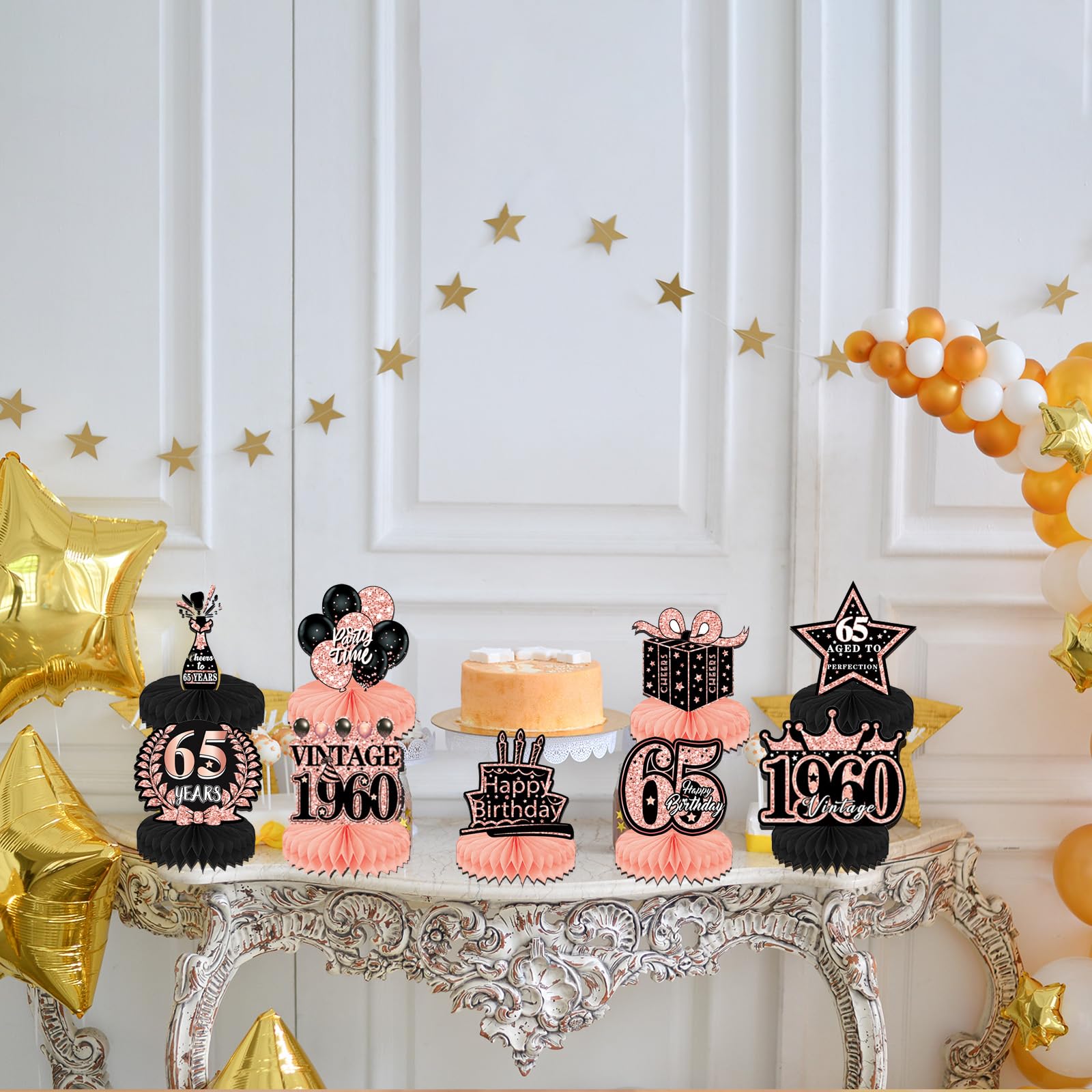 65th Birthday Decor: The color combination of rose gold creates a vibrant and warm party atmosphere, and at the same time, I wish you a wonderful, healthy, and energetic life at the age of 65.