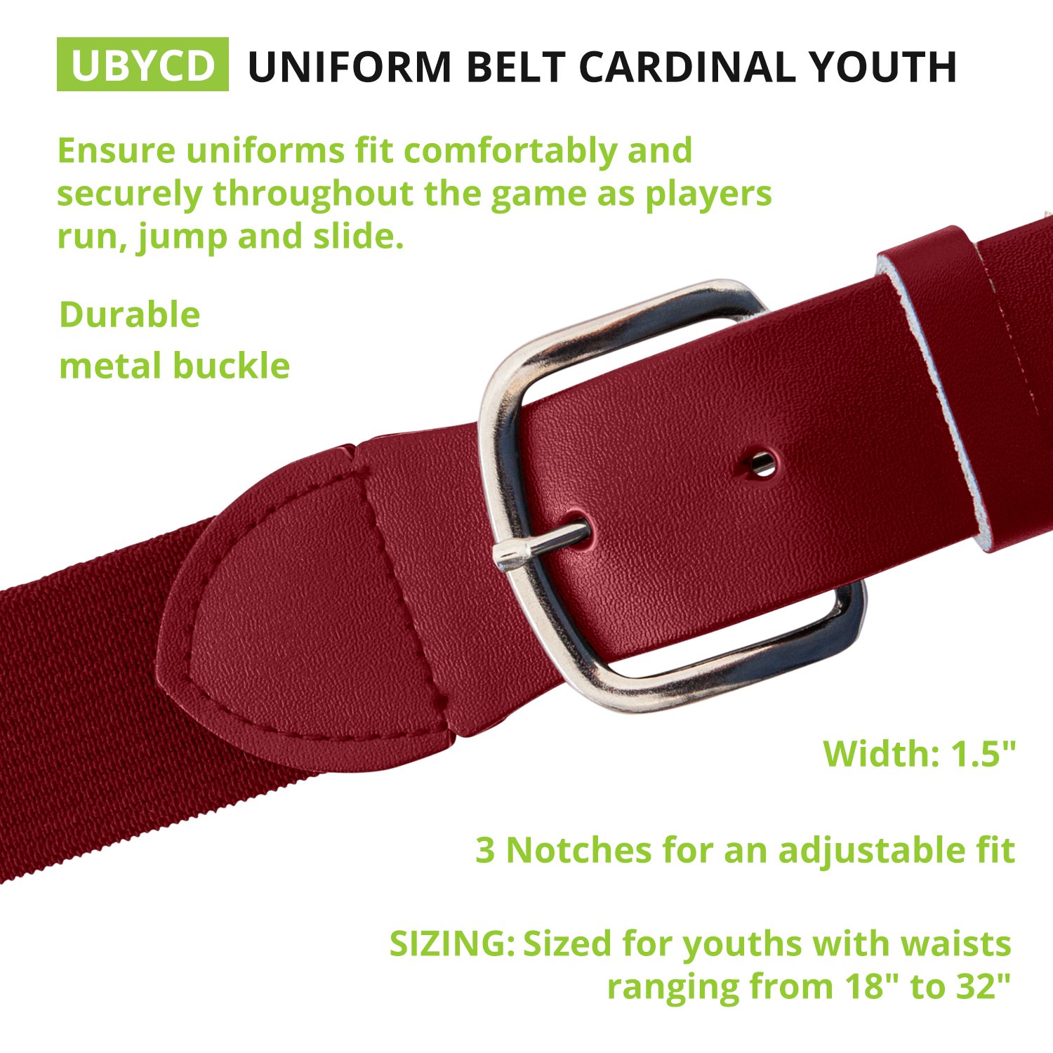 Ensure your uniform stays put with the Champion Sports Uniform Belt. Designed for versatility, this belt features an adjustable elastic band that stretches to fit youth and adult waists. A sturdy metal buckle and leather tab offer lasting durability, while the 1.5" width provides a clean, professional look. Choose from a wide range of colors to perfectly match your team's uniform.