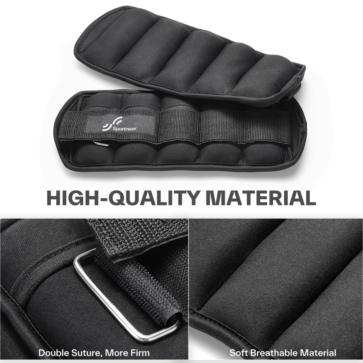 QUALITY & COMFORT: The Sportneer ankle weights were made of neoprene exterior, reinforced stitching, sturdy outer trim and moisture absorbing material inside, soft, breathable and comfortable, you could feel its softness when hold in your hands