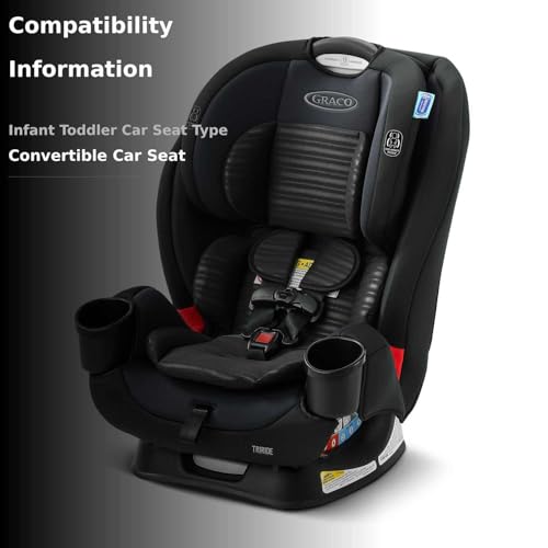 The Graco TriRide 3-in-1 Car Seat helps to keep your little one safe from baby to big kid, through 3 modes of use: rear-facing harness (5-40 lb), forward-facing harness (26.5-65 lb), and highback booster (40-100 lb). The No-Rethread Simply Safe Adjust Harness System allows you to adjust the height of the headrest and harness in one motion, helping to save you time and ensure your child is properly secured. Choose the perfect headrest height from 10 positions and adjust the seat to 6 recline positions for a better installation. The car seat is LATCH-equipped for easy installation. The integrated harness storage compartment keeps the harness safely stored away, without removing, while in belt-positioning booster mode. Open-loop belt guides help properly position your vehicleβs seat belt across your child in highback booster mode. 2 easy-to-clean cup holders keep your child's drinks and snacks close at hand, and the seat pad is comfortable and machine washable for your convenience. Removable plush head and body inserts help to keep your infant feeling cradled and comfortable. Steel-reinforced frame provides strength and durability for years of use. This car seat is Graco ProtectPlus Engineered to help protect in frontal, side, rear, and rollover crashes.