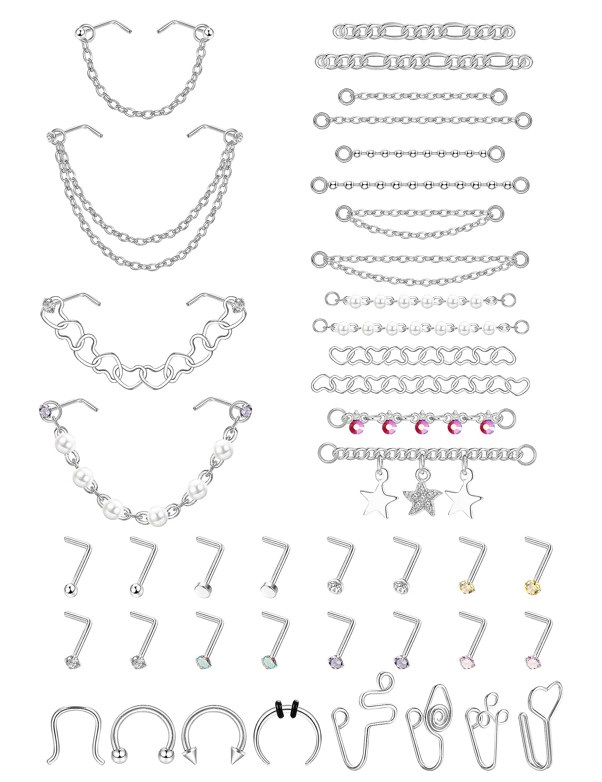 ★Packaging & Size: Five different sizes of nose ring chains, 32mm, 35mm, 40mm, 45mm, 50mm, meet your wearing needs for different parts. (This set does not include nose studs, nose rings, or earrings)