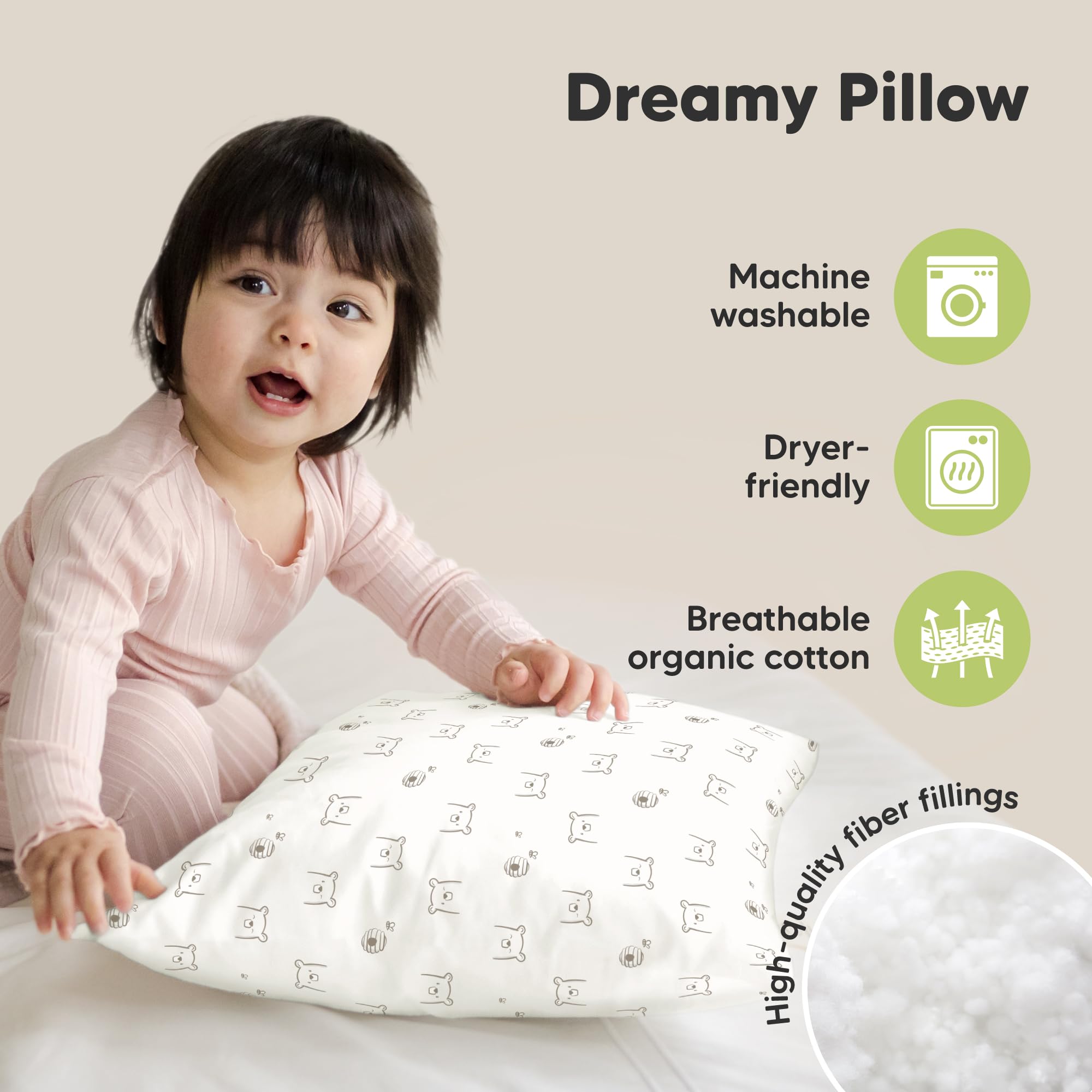 Durable and Washable - We know that messes always happen with kids around. Our Toddler Pillows are machine washable, so that you can keep your toddler’s pillow clean and fresh. Stays fluffy after each wash.
