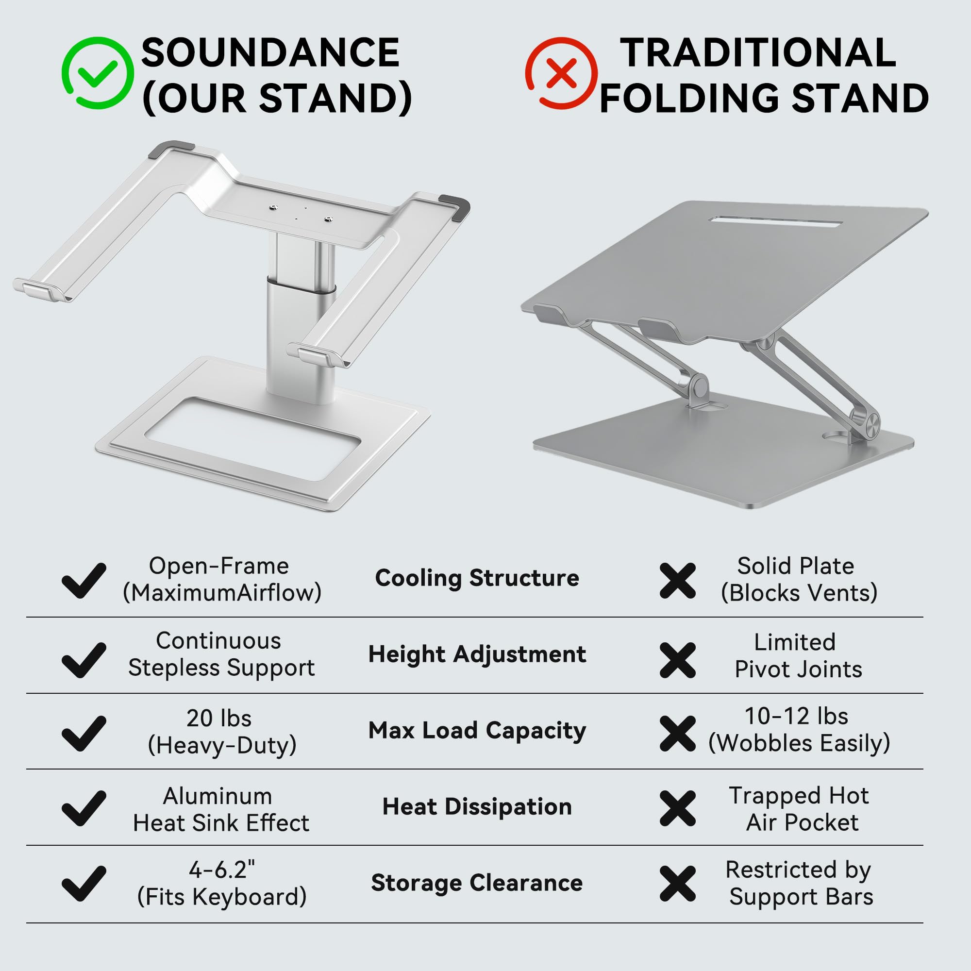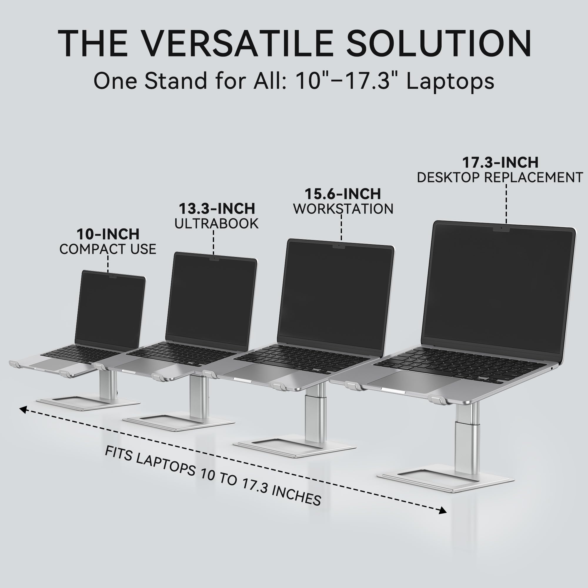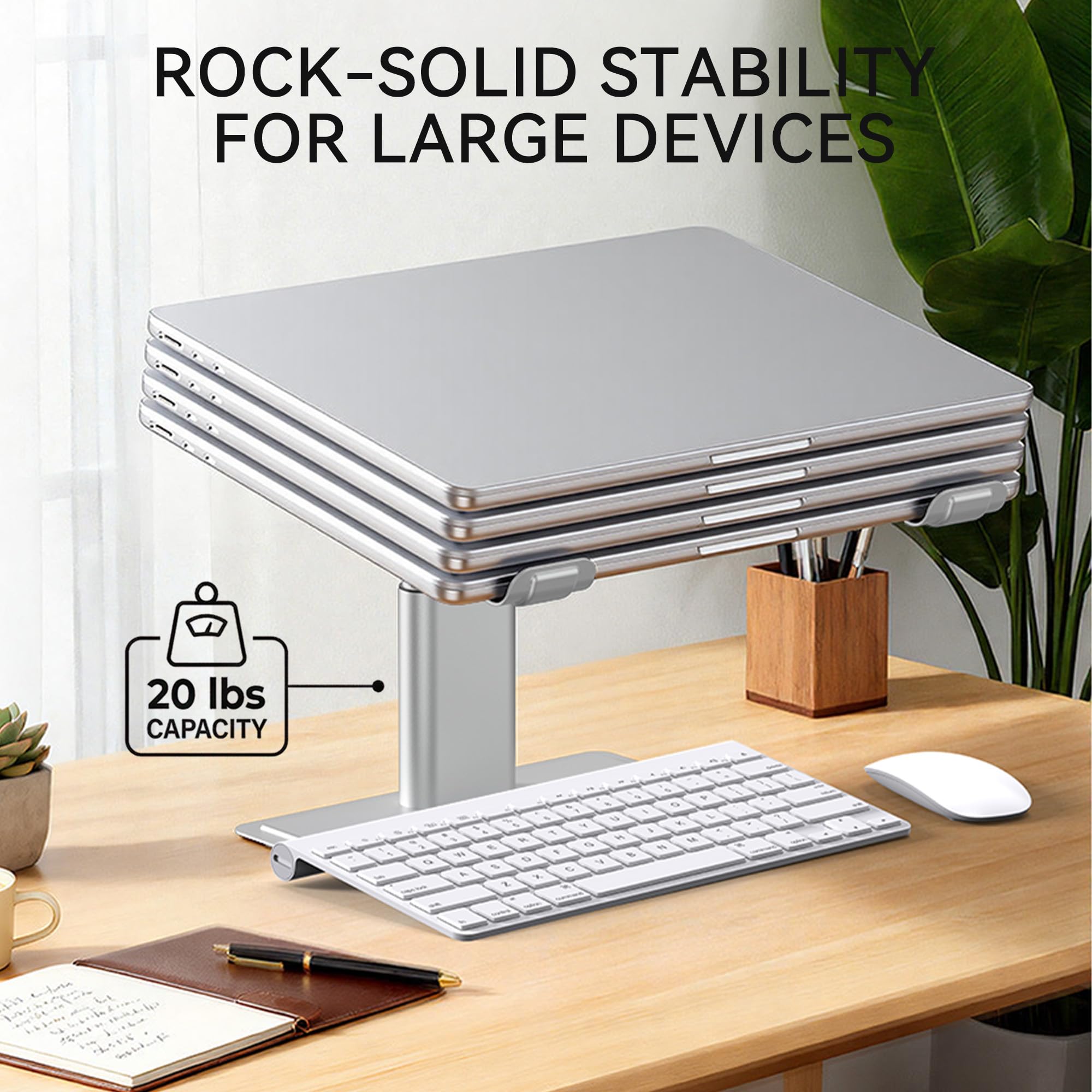 Universal Fit & Heavy Duty - Compatible with all 10 to 17.3-inch notebooks. This sturdy aluminum alloy frame supports up to 20lbs, ensuring your device remains rock-solid without wobbling.