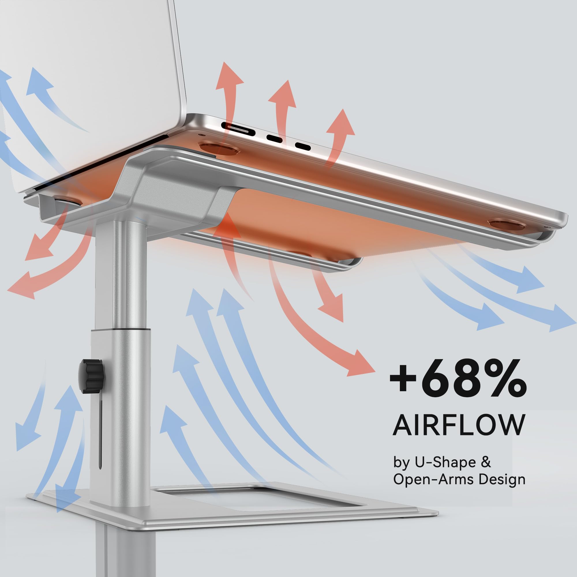 Maximum Heat Dissipation - The open-frame dual-arm design promotes 360-degree airflow, serving as a superior cooling pad alternative. Premium thermal-conductive metal material absorbs heat, preventing hardware throttling and extending your laptop’s lifespan.