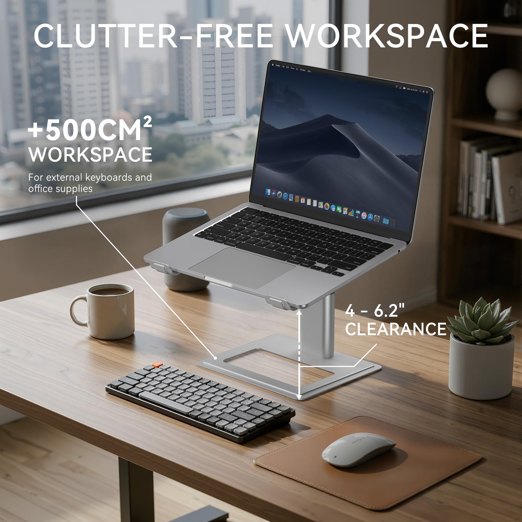 Declutter Your Desk Space - Elevating the laptop creates 5 inches of clearance underneath, providing extra desk space for a wireless keyboard, mouse, or office stationery. Suitable for minimalists looking to maximize productivity in compact study desk areas.