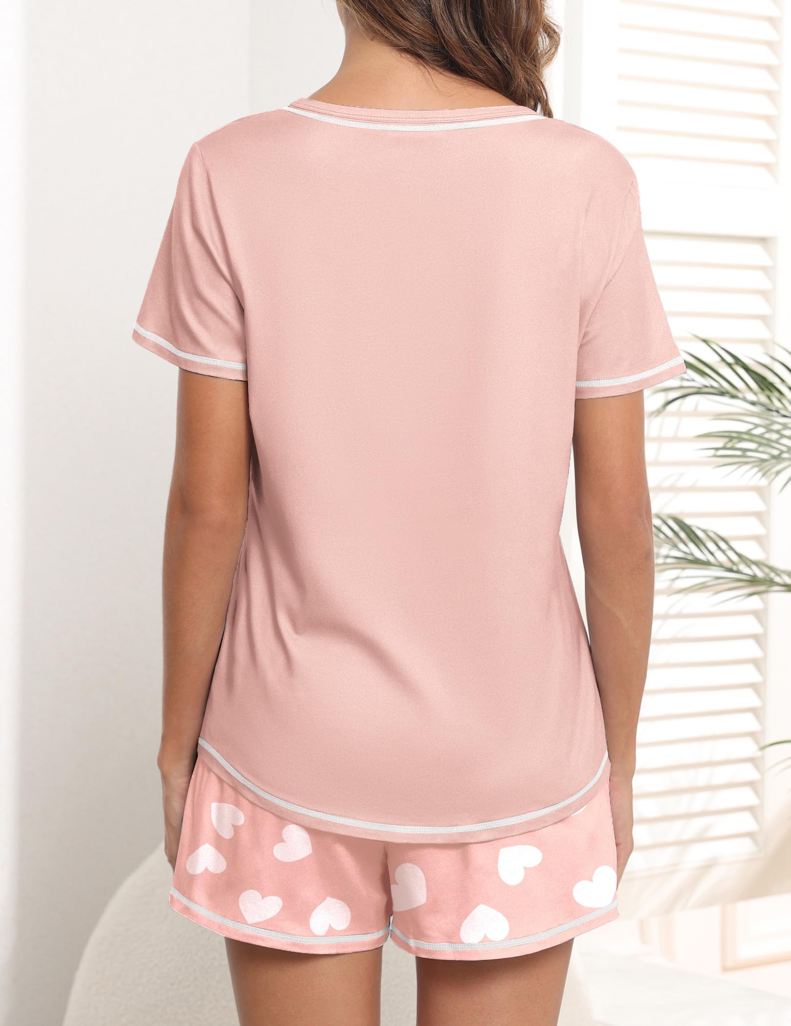 Design: The pajama top features classic chest pocket and V neck, with exquisite hemming workmanship; the pajama shorts features adjustable drawstring and pockets. Loose fit lounge sets, cute and comfy pajamas for women and teens girls