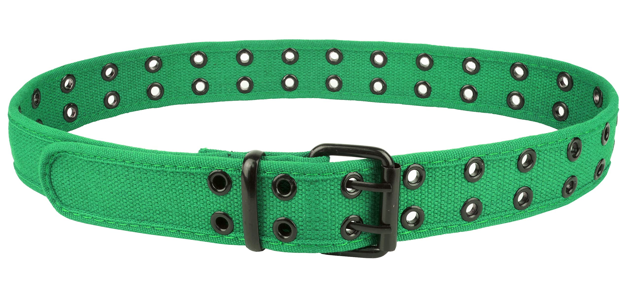 Canvas Web Belt /Black Double Grommet Holes / Metal Buckle