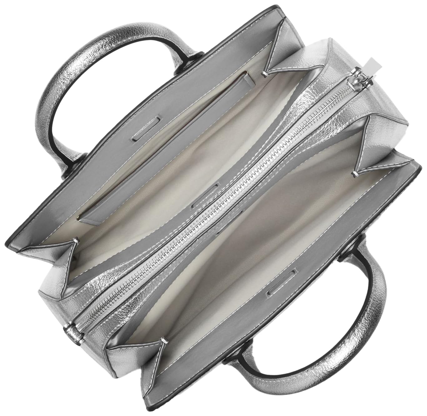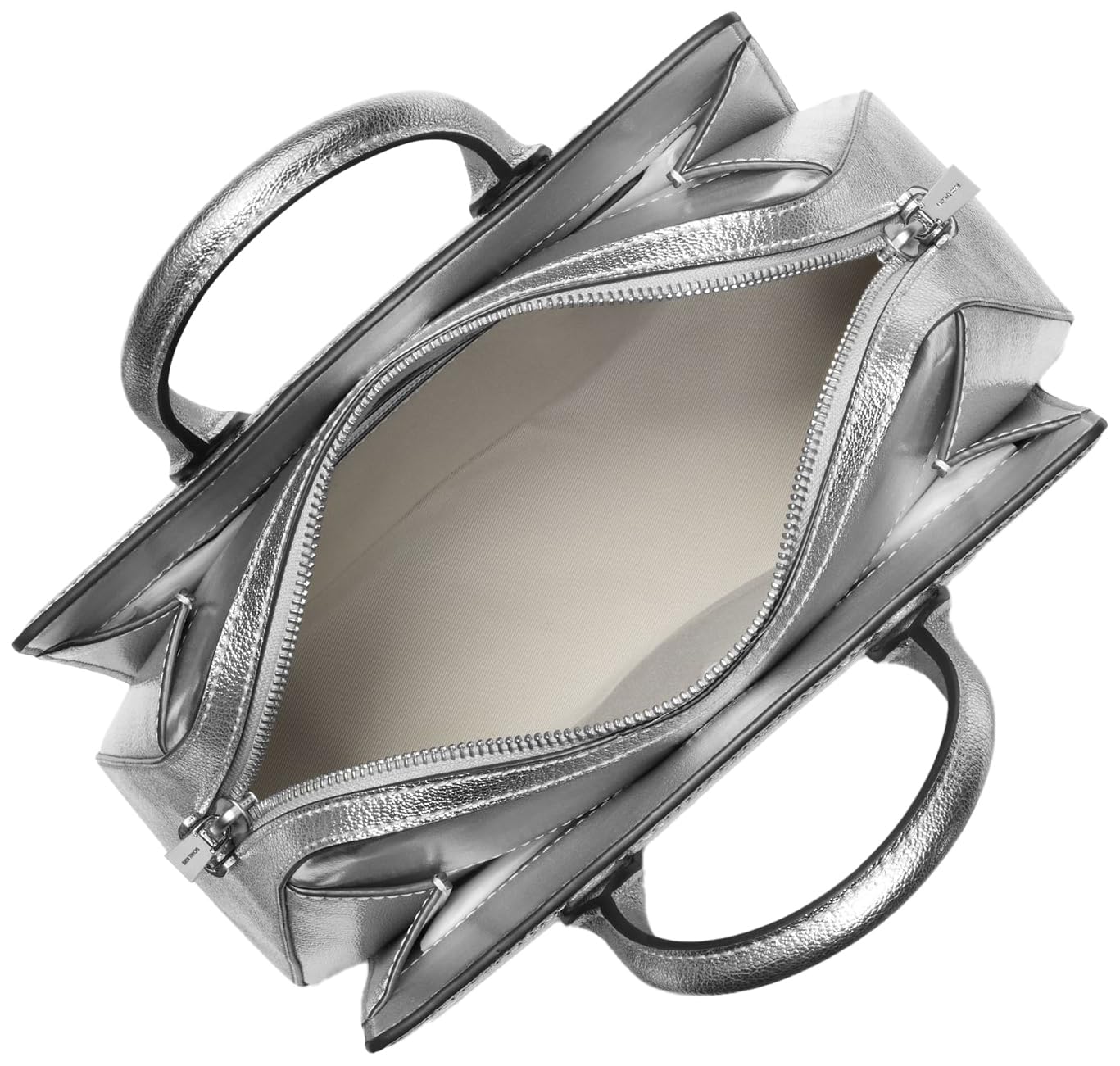 Materials: Crafted from 100% metallic leather with silver-tone hardware Our Leather: 100% of the leather in this product comes from tanneries receiving Leather Working Group Gold- or Silver-certification in recognition of their environmental performance Attention to Details: Interior back slip pocket, back zip pocket, center zip pocket, magnetic fastening and polyester lining. 10”W X 7.25”H X 4.75”D with 3.5" handle drop and 22.5” optional/adjustable crossbody strap