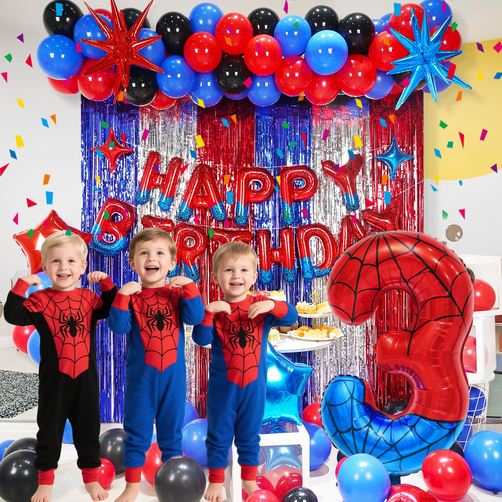 DUAL-COLOR DESIGN: red and blue color scheme with intricate spider web pattern detail for a superhero-themed aesthetic,Give the child a striking age statement!