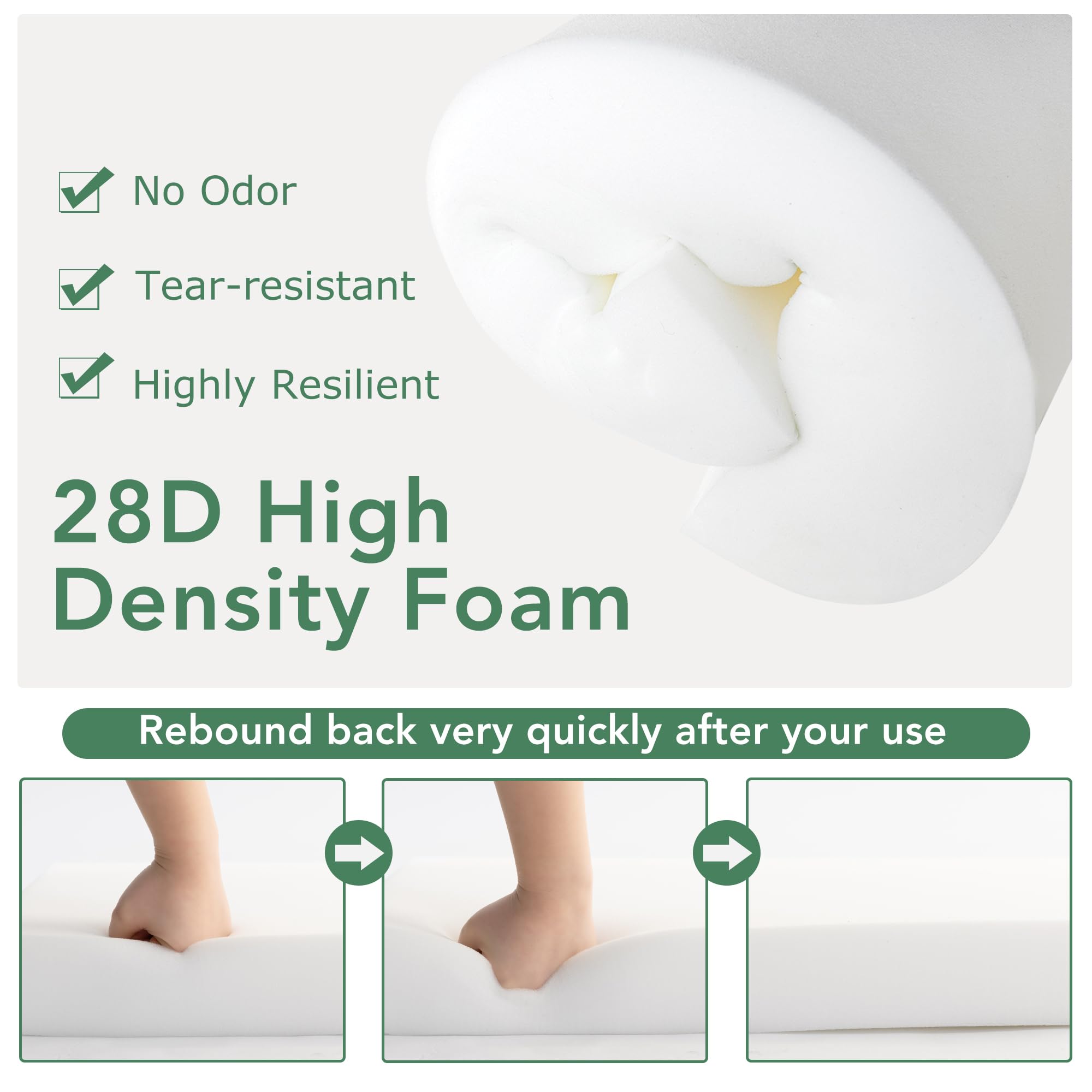 Perfect Comfort and Support: Our outdoor chair cushions set of 4 pieces measure 24" x 24" x 3", offering a perfect fit for most patio and lawn chairs. Filled with 28D high resilience foam, they provide excellent elasticity and support, relieving pressure on your lower back, hips, and sciatic nerve, making them ideal for extended use.