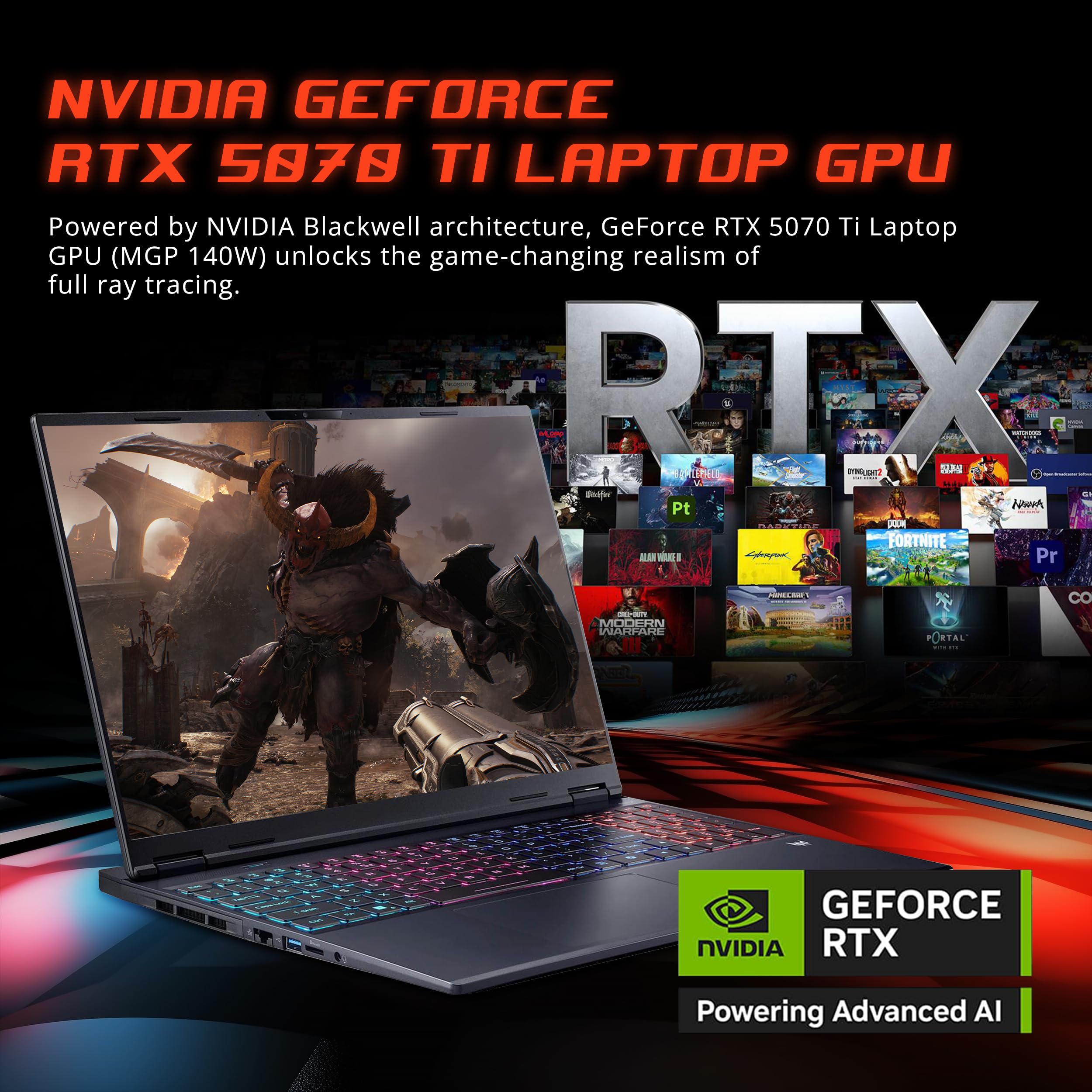 【NVIDIA GeForce RTX 5070 Ti 12GB GDDR7 Graphics】Smooth, high-performance gaming with 12GB VRAM, ray tracing, and AI-powered DLSS for stunning visuals and fluid frame rates.【4-Zone RGB Backlit Keyboard】Game or work comfortably with a desktop-style keyboard and customizable RGB lighting, delivering clear key visibility even in low-light environments. 【Copilot Key】 Instant AI assistance for gaming, productivity, and system optimization.