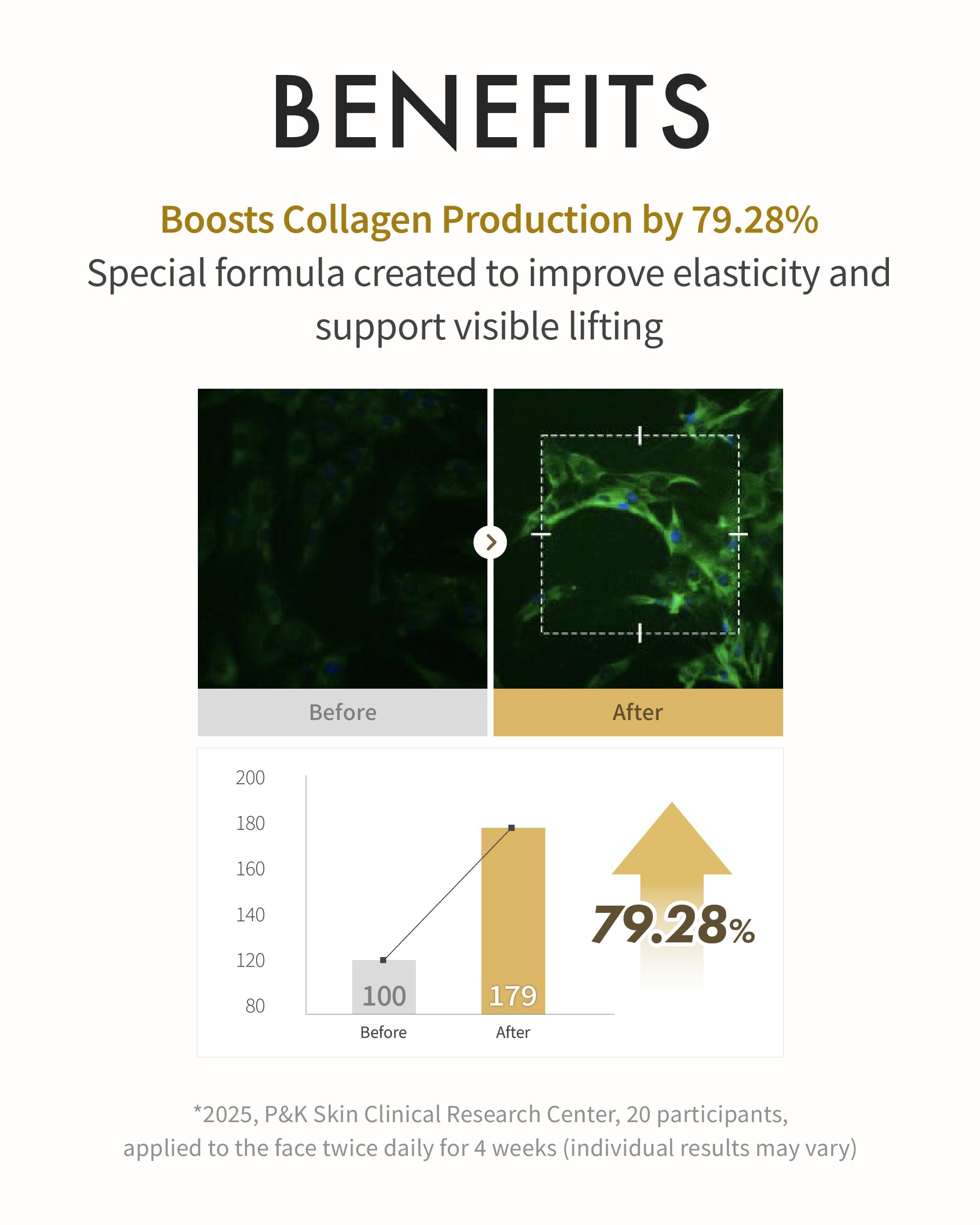 3-STEP ELASTICITY SOLUTION: Features a 3-step elasticity solution with triple amino acids, elastic peptide complex, and skin-friendly collagen to awaken the essence of firm, resilient skin.