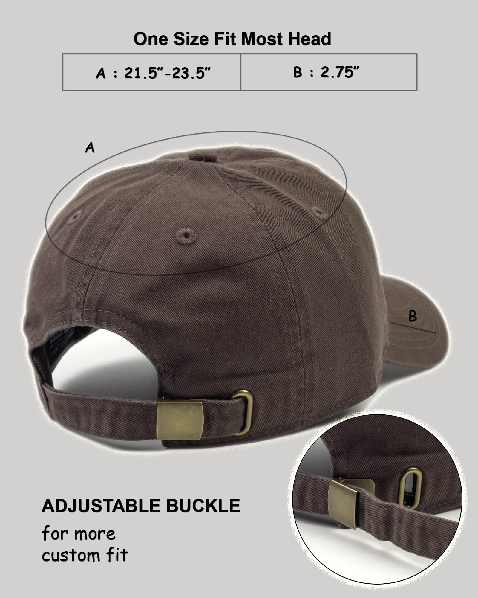 Adjustable Metal Buckle Back Closure : Great Fit for All Head Size. Hat Size Measurements : 21.5" - 23.5"