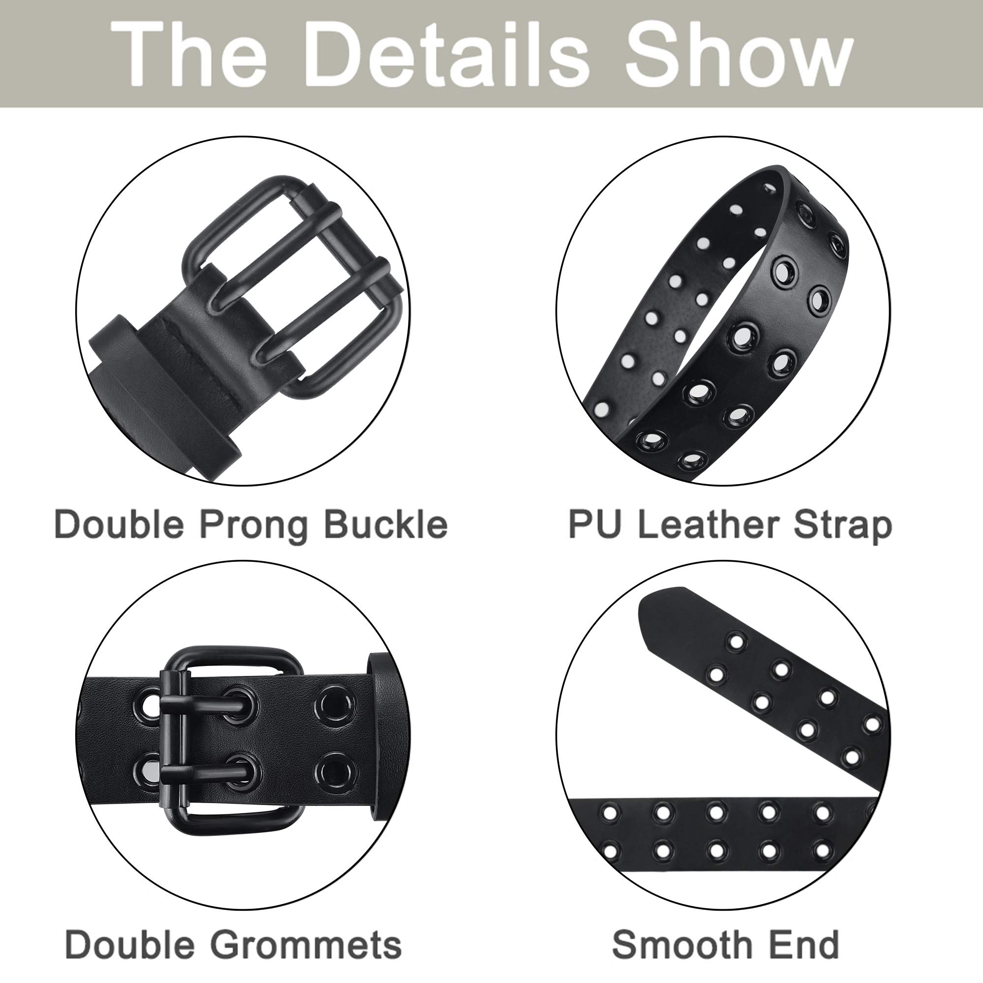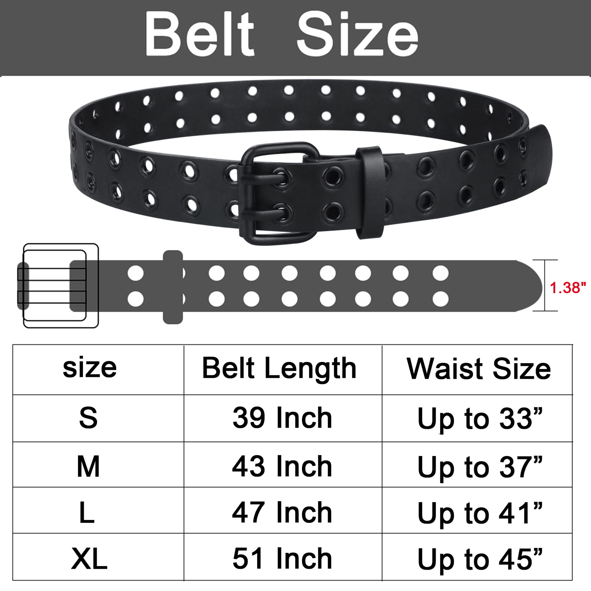 Grommets Studded Belt: The double studded grommet on the black strap will easily give you a punk rock look during your casual life, and the continuous metal eyelets make this mens leather belt more convenient to adjust for different waist sizes