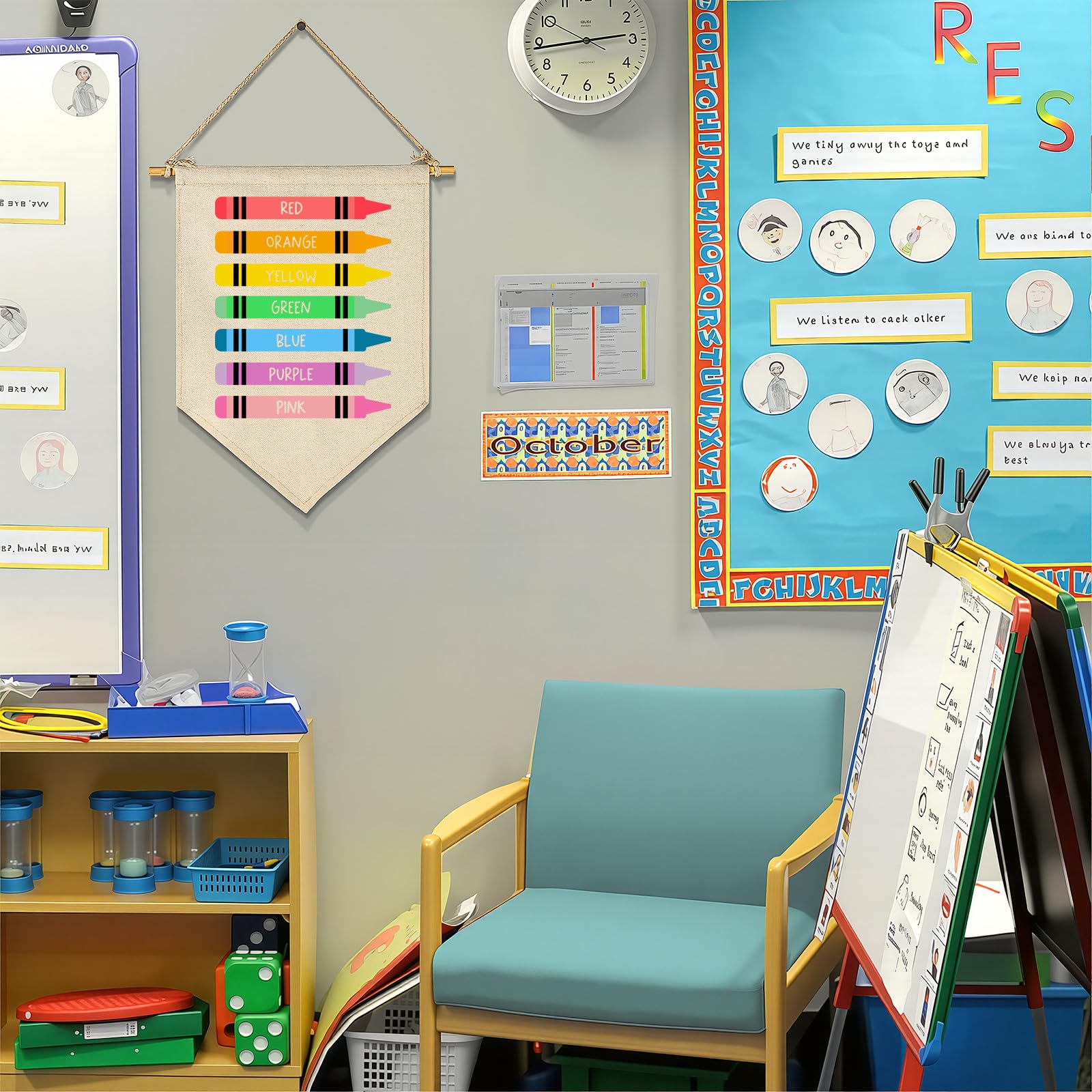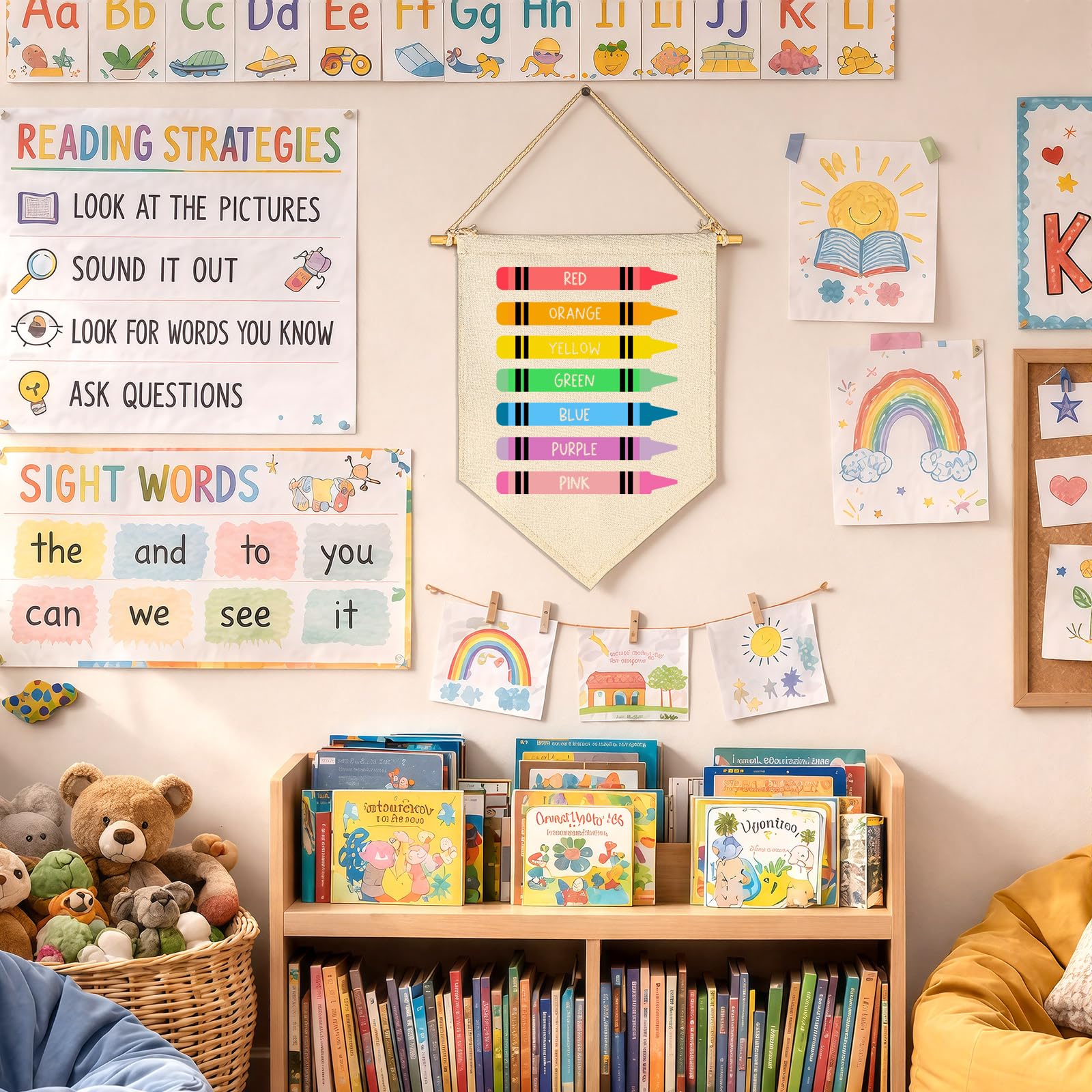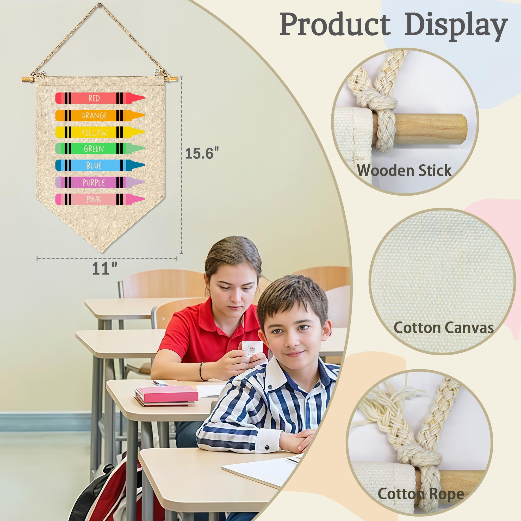 Spark early curiosity with this Color Educational Gift Banner. Made from premium beige canvas and a sturdy wooden dowel, this 15.5" x 11" flag is built to endure daily discovery on any nursery or bedroom wall. It features a whimsical crayon-themed design to help kids master seven core colors through visual play and recognition. An ideal gift for baby showers, new homes, and Christmas to support foundational cognitive development. This reusable, fade-resistant decor fits beautifully in daycare centers or reading rooms. A professional-grade gift for every advocate of early childhood learning.