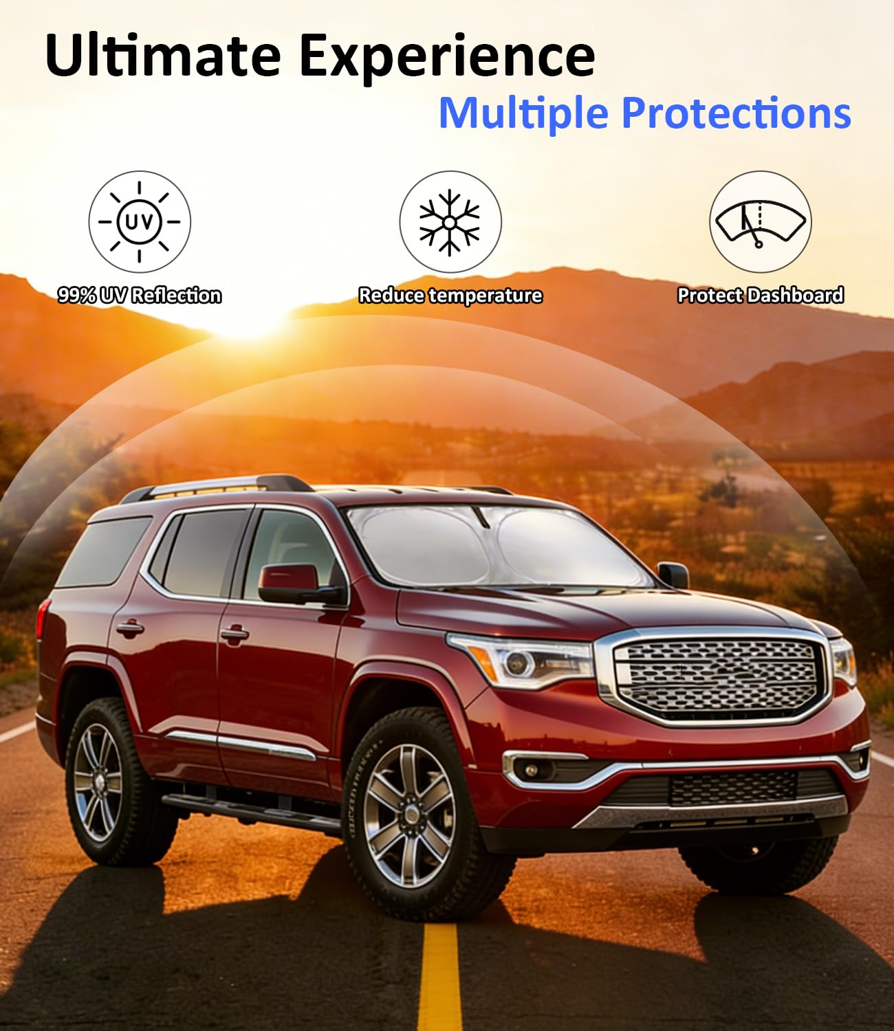 [Custom Precision Fit for Your GMC Acadia] Engineered specifically for the GMC Acadia (2017-2023 models), this sun shade installs effortlessly. It hugs your windshield perfectly with no suction cups needed, and resists sagging or collapsing—making it ideal for both daily use and outdoor camping.