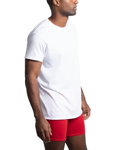 Description Fruit of the Loom men's crews work great alone or to add an extra layer under a button-down or polo shirt. This shirt eliminates ride-up, it stays neatly tucked so you can go about your busy day with confidence. They are designed to maintain comfort and softness even after many washes. The improved, double-stitched collar stays flat and keeps its shape, providing a consistent look. This Fruit of the Loom t-shirt features a tag free designed to provide all-day comfort. There are soft covered seams on the neck and shoulders for extra comfort. Wear layered or by itself. Available in a variety of sizes, you can choose the ideal one for your body.