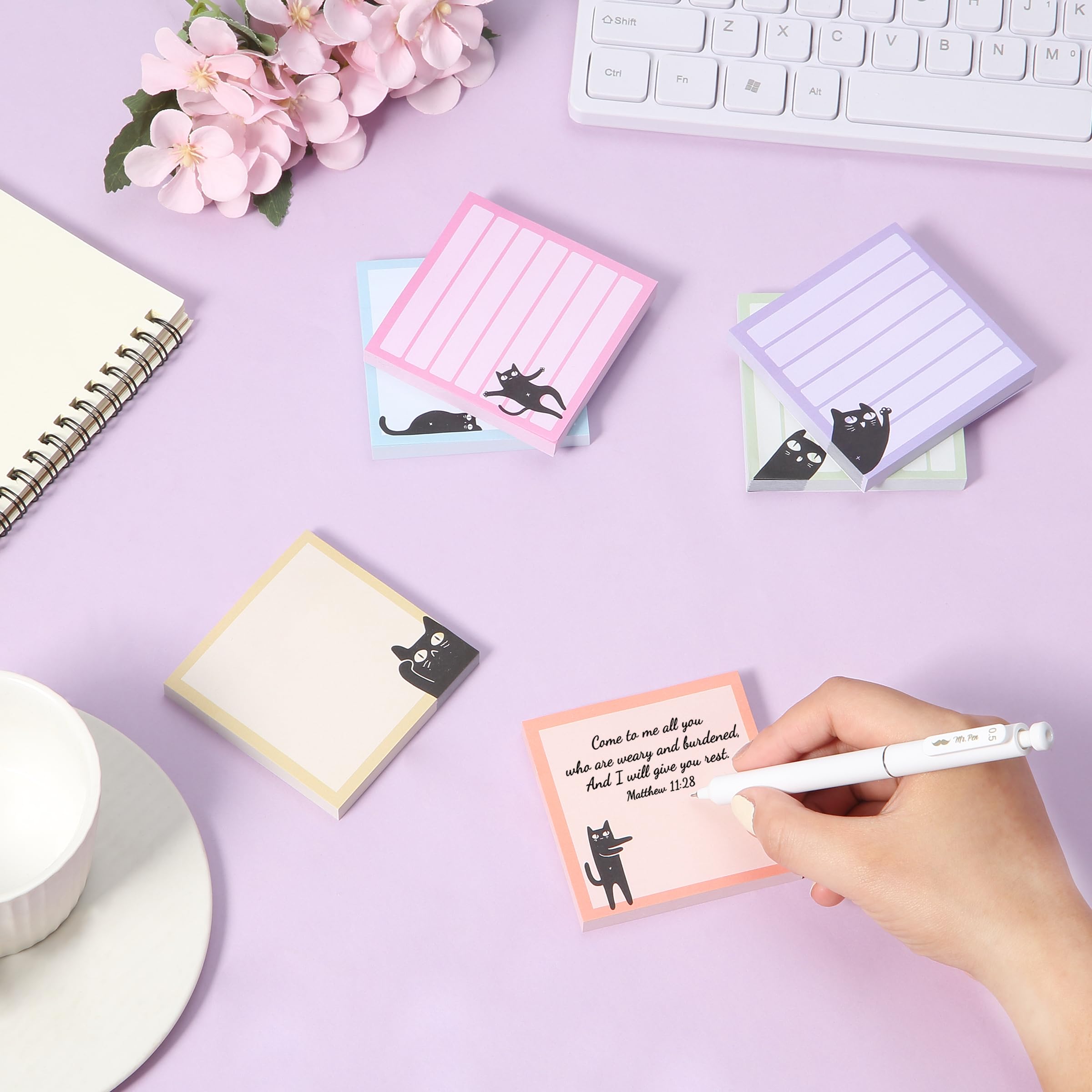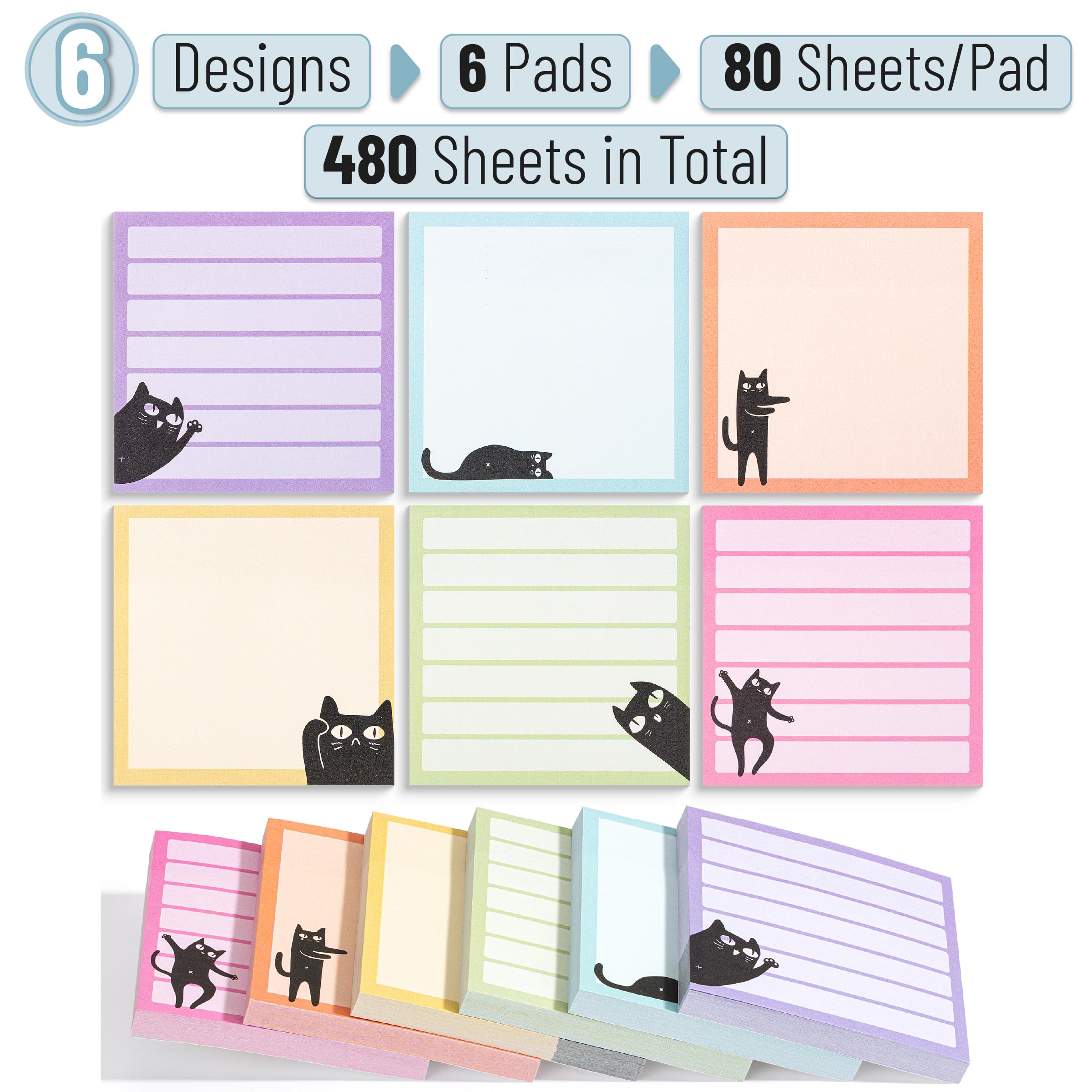 Mr. Pen sticky notes feature a set of 6 colorful pads with 480 sheets, each adorned with adorable black cat illustrations, adding a playful touch to your notes and reminders. Made with high-quality adhesive paper, these sticky notes securely hold to most surfaces and remove easily without leaving residue behind. Each pad measures 3" x 3" and contains 80 sheets, providing a total of 480 sheets for jotting down reminders, to-do lists, and creative ideas. The adorable cat designs and soft pastel colors bring a blend of functionality and fun to your workspace, making every note more enjoyable. Perfect for home, office, or school use, these sticky notes are an ideal choice for cat lovers and anyone looking to brighten their daily tasks.