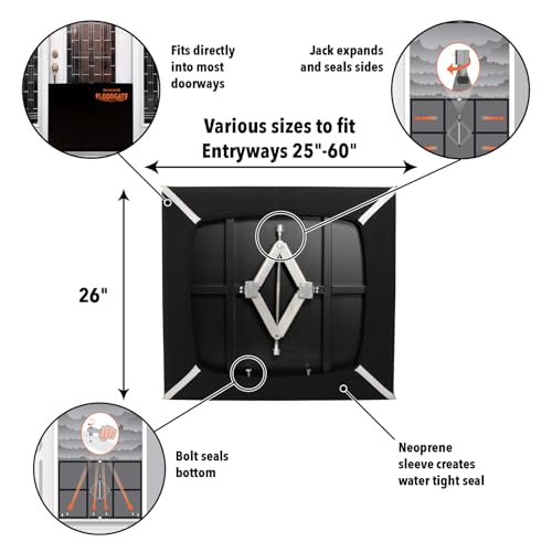 Keep on hand for emergency situations and be prepared for the worst! Flood Gate can be installed in minutes and can be used year after year.Provides Flood Water protection up to 26-in High.Adjustable & expands to fit multiple doorway sizes. For larger openings, stanchions join units together.Use for flood emergency, construction, water way projects, fire dept., businesses, property management, gov't & more.Entryway remains accessible while in use.Neoprene Sleeve Creates Water Tight Seal