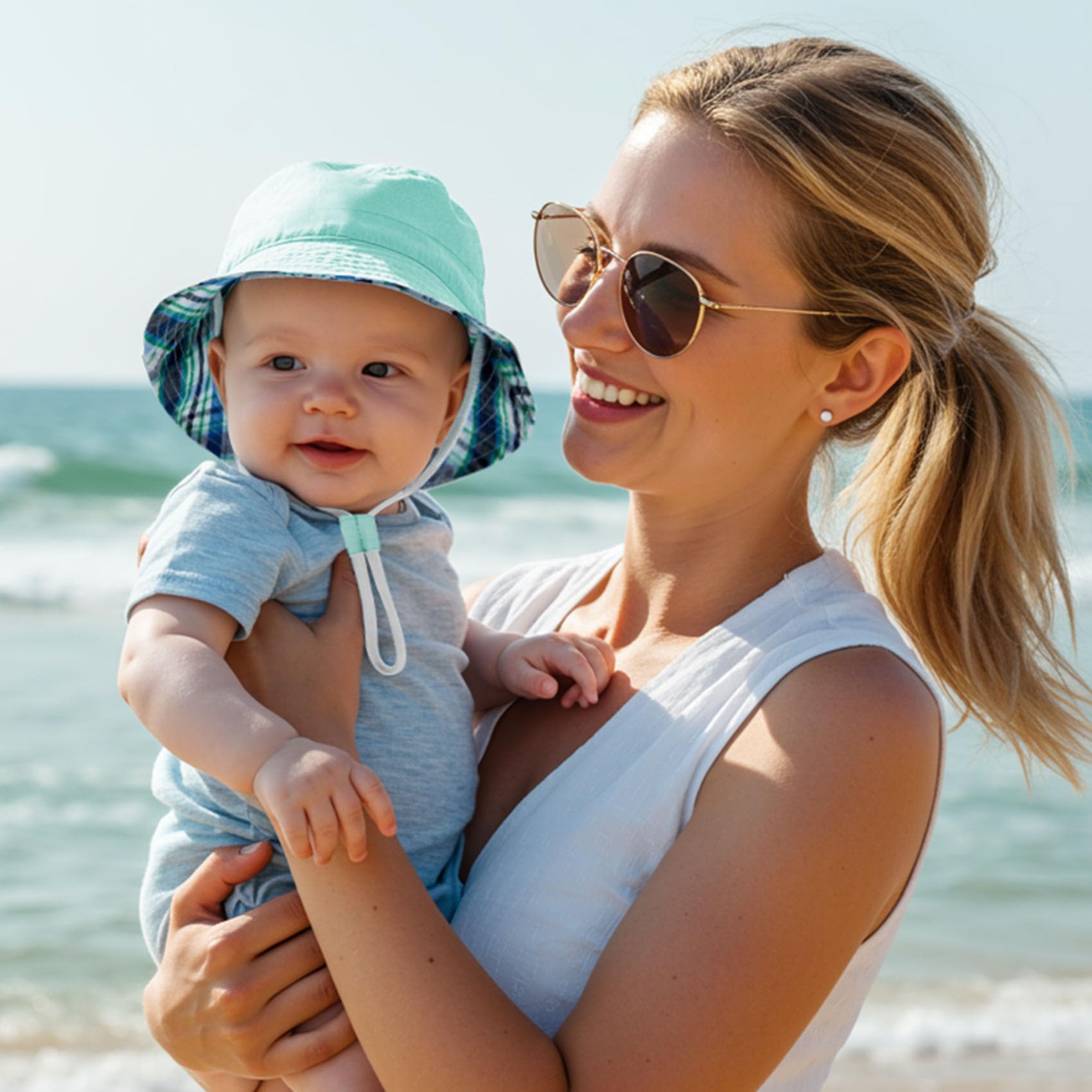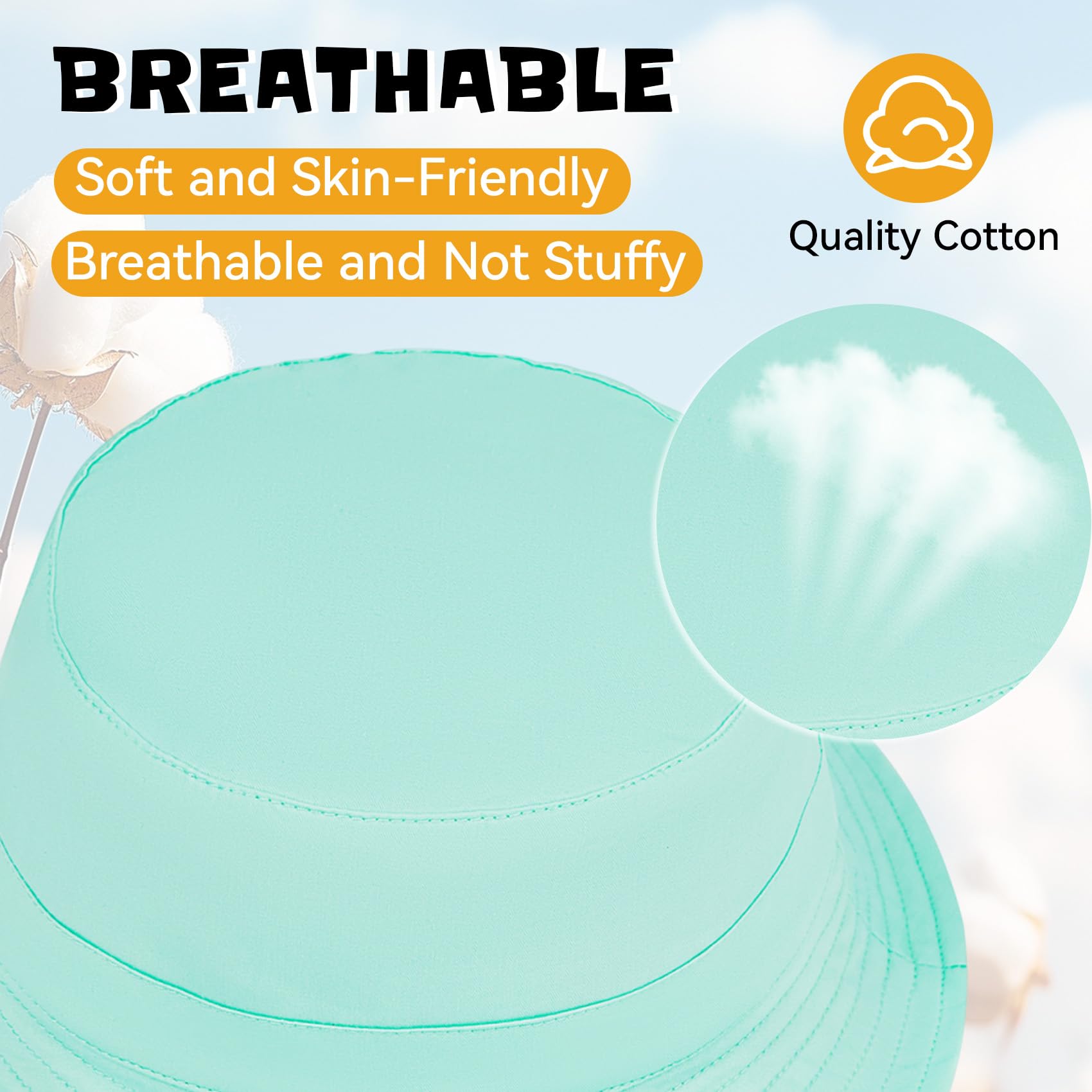 Adjustable:This baby bucket hat comes with an adjustable soft chin strap that can be adjusted to fit your baby's needs, and stays in place even in the breeze at the beach or while running around. Ensure comfortable and safe wearing
