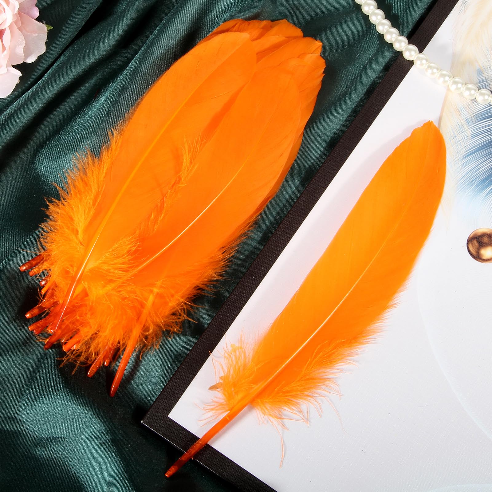 🦢 Applications: Bulk Goose feathers are perfect for wedding centerpiece, thanksgiving craft, feather garland,cake top decor ,Party,masquerade decor etc. Luxurious feathers will make your party more beauty and romantic.