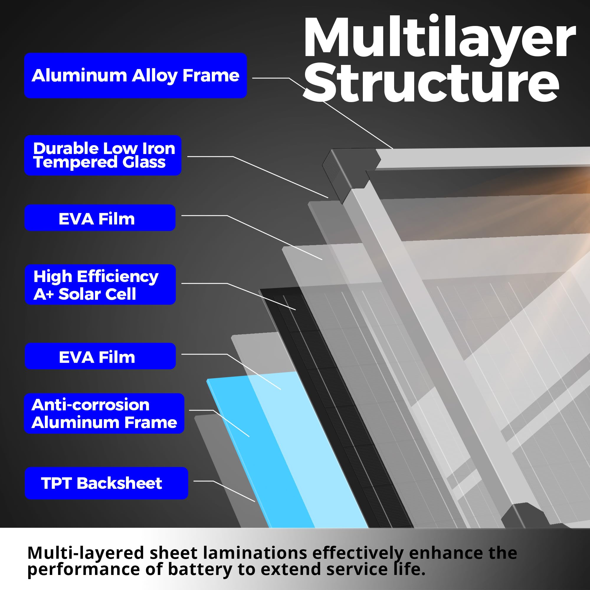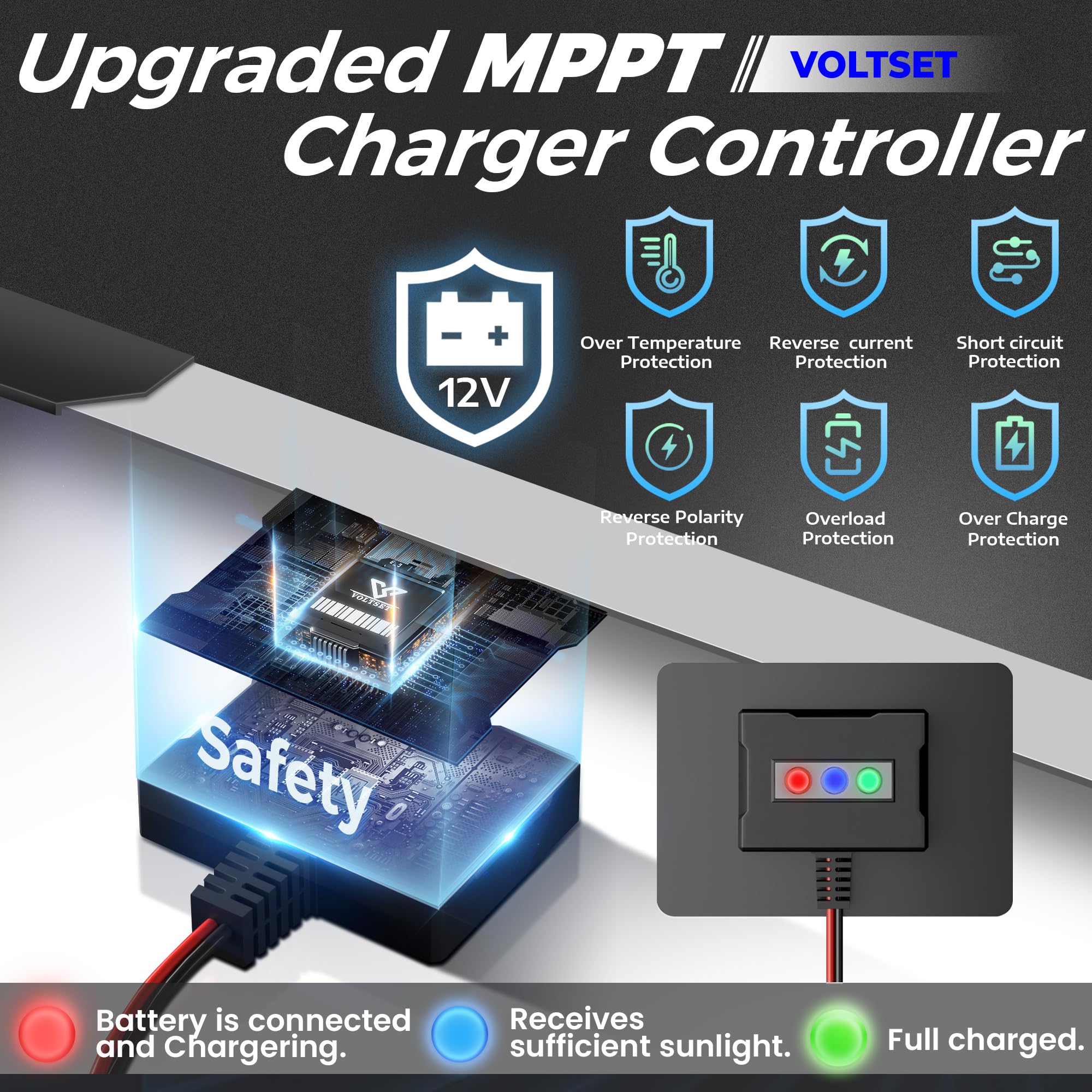 Safe Charging System: Equipped with an advanced solar charger controller that prevents overcharging and deep discharging of batteries, ensuring a long-lasting power cycle. The IP67 waterproof controller safeguards your investment against water damage