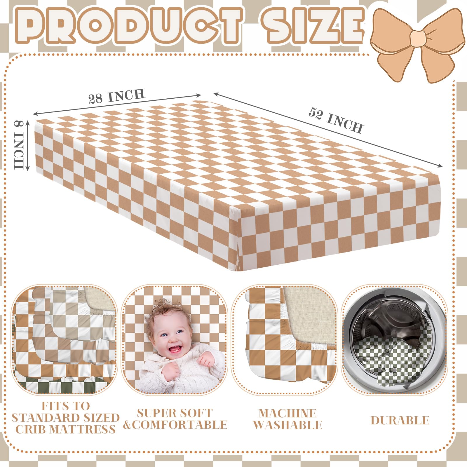 Ideal Fit with Standard Size Crib: the package includes 4 crib sheets specifically tailored to fit a standard size crib or crib mattress of 52'' x 28''; Each sheet comes with full elastic trim on all 4 sides and is secured with pockets of approx. 8 inches deep for easy usage; This quantity provides flexibility to always have a fresh sheet handy