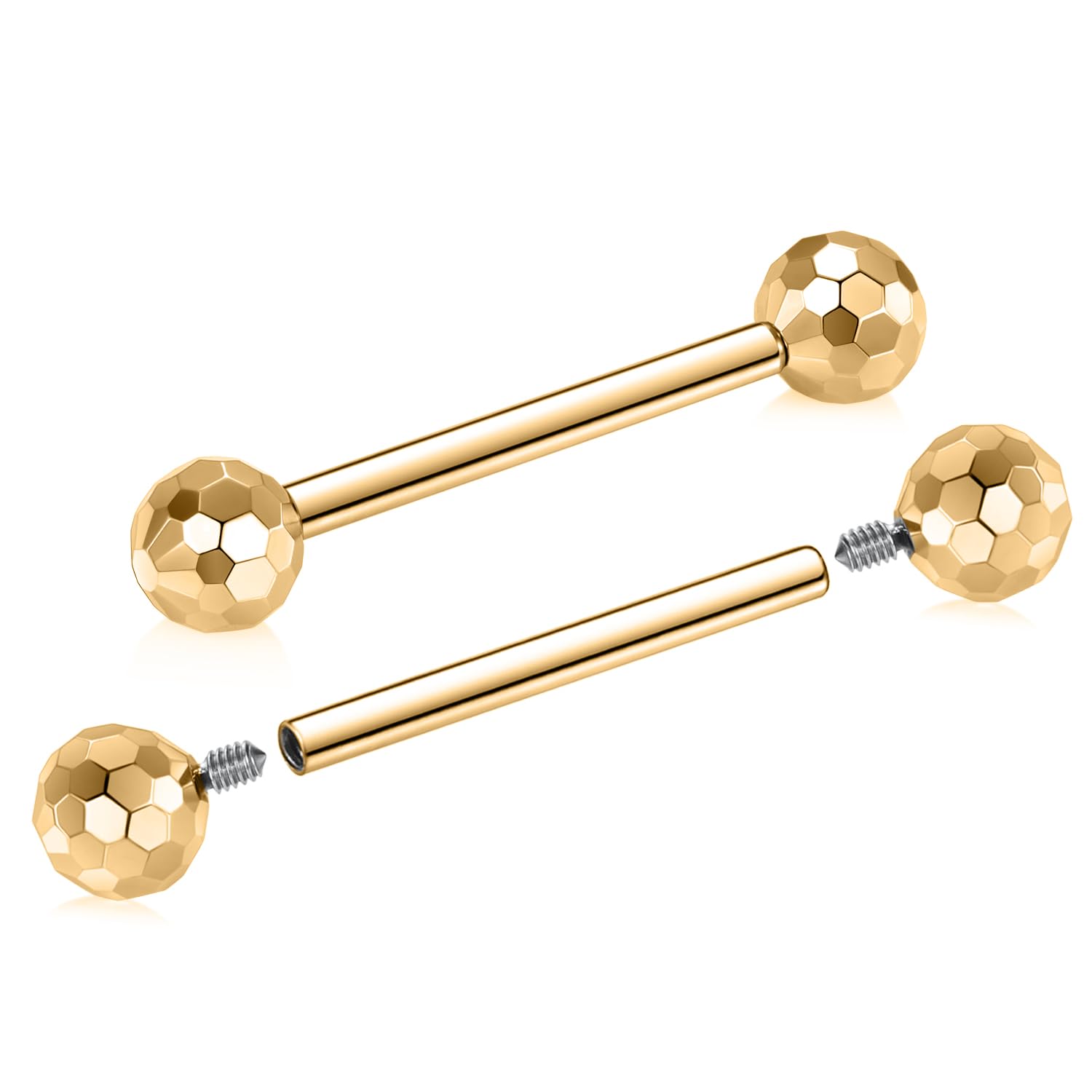Size and Color: gauge: 14G (1.6 mm); Nipple Barbell Length: 11/16"(18 mm); Ball Size: 5 mm. Color: Gold. 2pcs nipple rings per order
